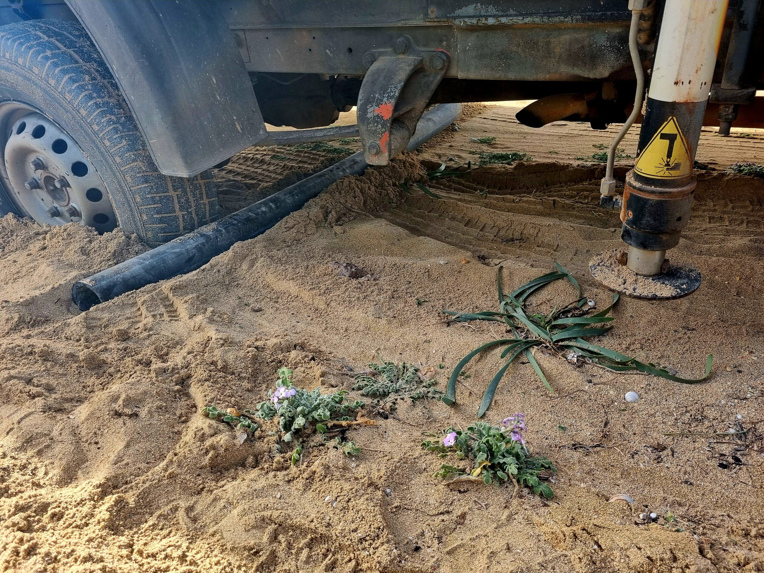 Όχημα εργολάβου πάνω σε κρινάκια και άλλα φυτά