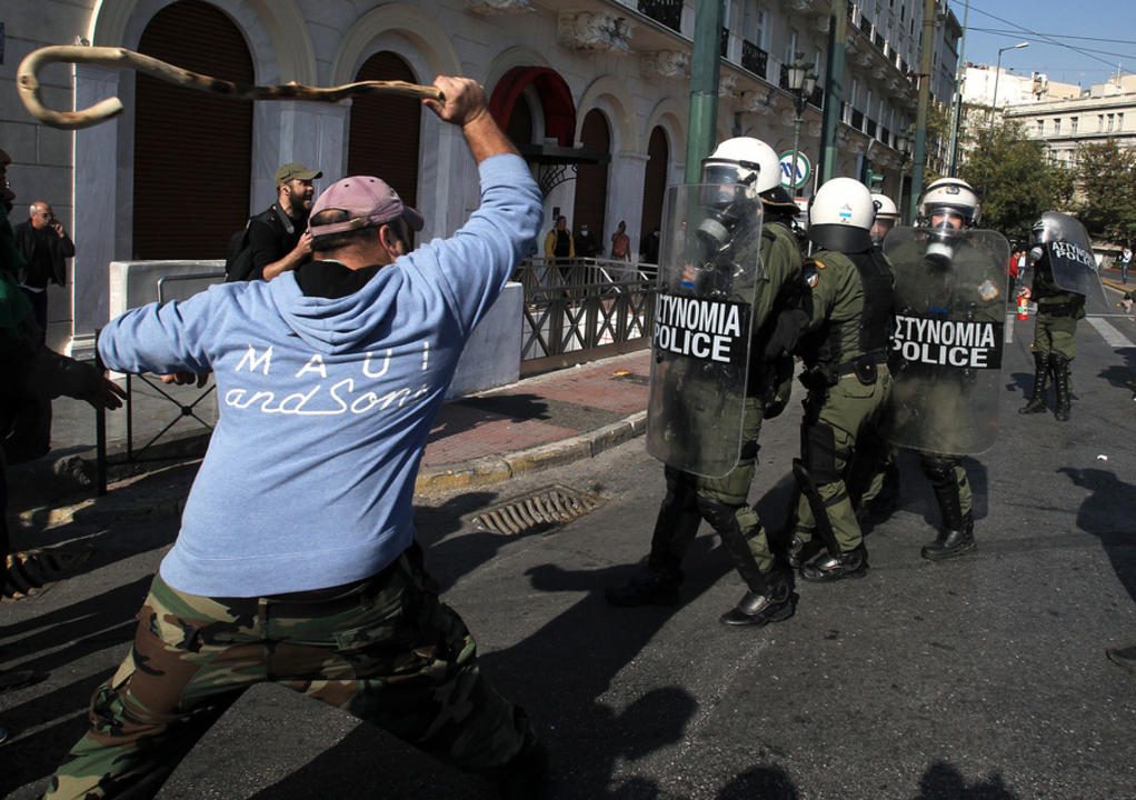 Με χρήση χημικών και δακρυγόνων απάντησαν δυνάμεις των ΜΑΤ στους συγκεντρωμένους αγρότες, που λίγο πριν τη μία η ώρα επιχείρησαν να μπουν στον προαύλιο χώρο του Κοινοβουλίου. Γύρω από την πλατεία Συντάγματος σημειώνονται συμπλοκές, ενώ η αστυνομία έχει προχωρήσει σε δύο προσαγωγές, με ένα εκ των οποίων ο Κρητικός αγρότης Γιάννης Μαλλιωτάκης από το Λασίθι.