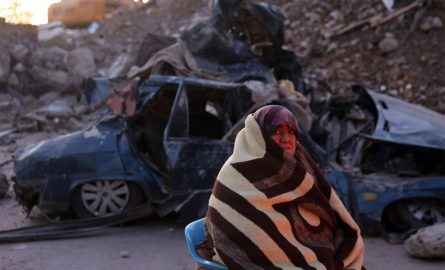 Στο χωριό Μπεσνάγια, στα σύνορα με την Τουρκία, ο Μάλικ Ιμπραΐμ σκάβει χωρίς σταματημό στα ερείπια, αναζητώντας 30 μέλη της οικογένειάς του, που βρίσκονται όλοι στα συντρίμμια. Ήδη έχουν ανασυρθεί 10 πτώματα.