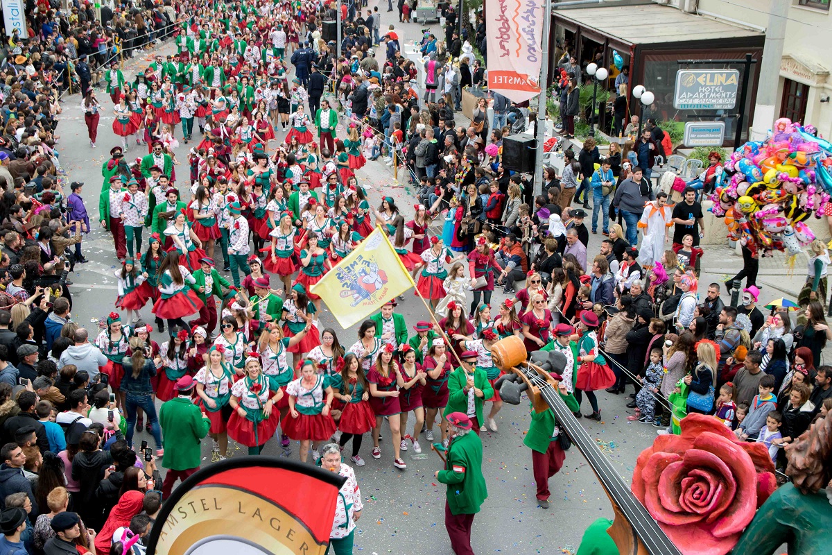 Χιλιάδες επισκέπτες παρακολούθησαν την παρέλαση με τα 32 άρματα, η οποία ξεκίνησε στις 2:00 το μεσημέρι, ναι μεν με συννεφιά αλλά χωρίς υποψία για τη συνέχεια. Στα χρώματα των καρναβαλιστών ταίριαξαν οι χρωματιστές ομπρέλες που ανοίχτηκαν από τον κόσμο, εκατοντάδες από τους οποίους επέλεξαν ακόμα και σακούλες νάιλον για να προφυλαχτούν από τη βροχή όσο αυτό ήταν δυνατό.