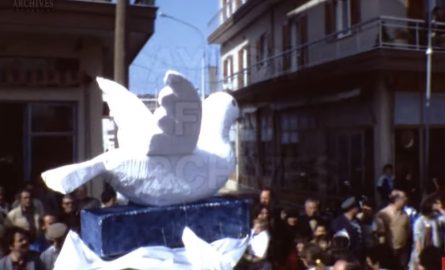 Η εικόνα αλλάζει μ’ ένα γαϊδουράκι που το έχουν ντύσει για την περίσταση να περνάει μπροστά απ’ τον ναό του Αγίου Δημητρίου, ενώ καρναβαλιστές, που είναι βαμμένοι στο ίδιο μοτίβο, χορεύουν προσκαλώντας τους καθήμενους να πάρουν και εκείνοι μέρος. Ο κινηματογραφιστής επιστρέφει στα πλάνα απ’ το καρναβάλι με τα άρματα καθώς και τον βασιλιά καρνάβαλο και στέκεται στον χορό γαϊτανάκι των κοριτσιών. Ένα απ’ τα άρματα γράφει “ΕΟΚ made in USA” ενώ ακολουθούν ένα αυτοσχέδιο σκάφος, παιδάκια ντυμένα μασκαράδες κι ένα άρμα που γράφει “ΠΕΡΙΠΤΕΡΟ Ο ΠΟΘΟΣ”.