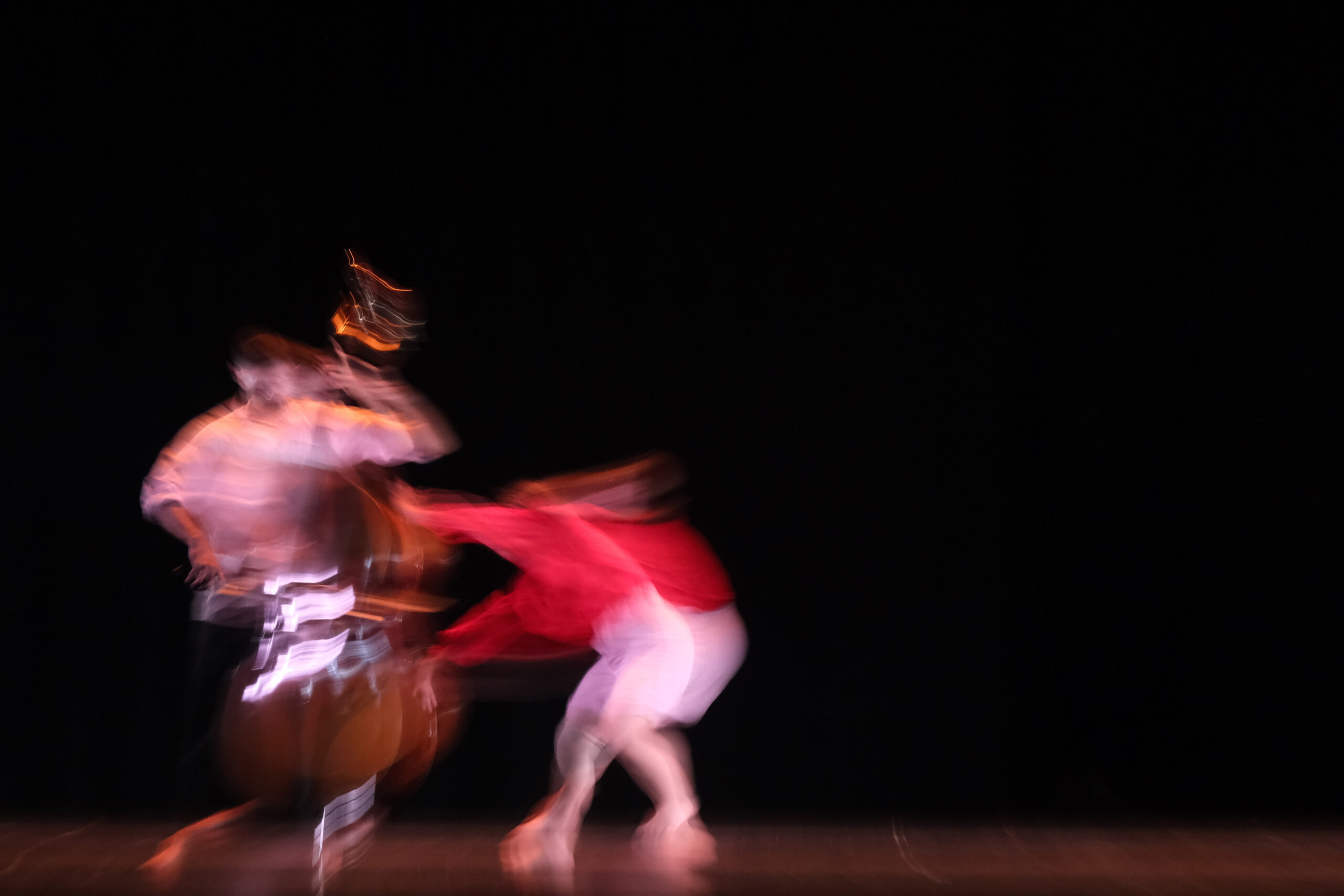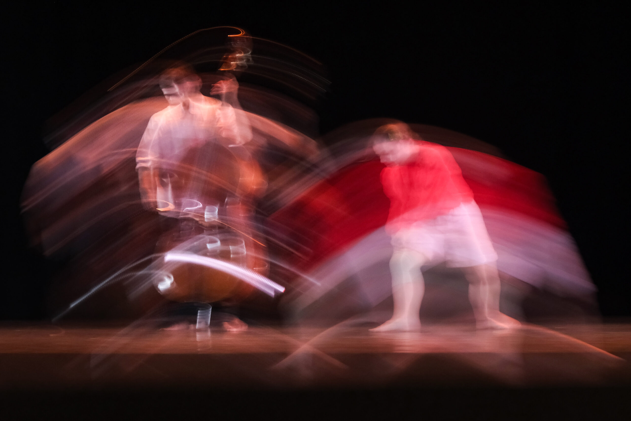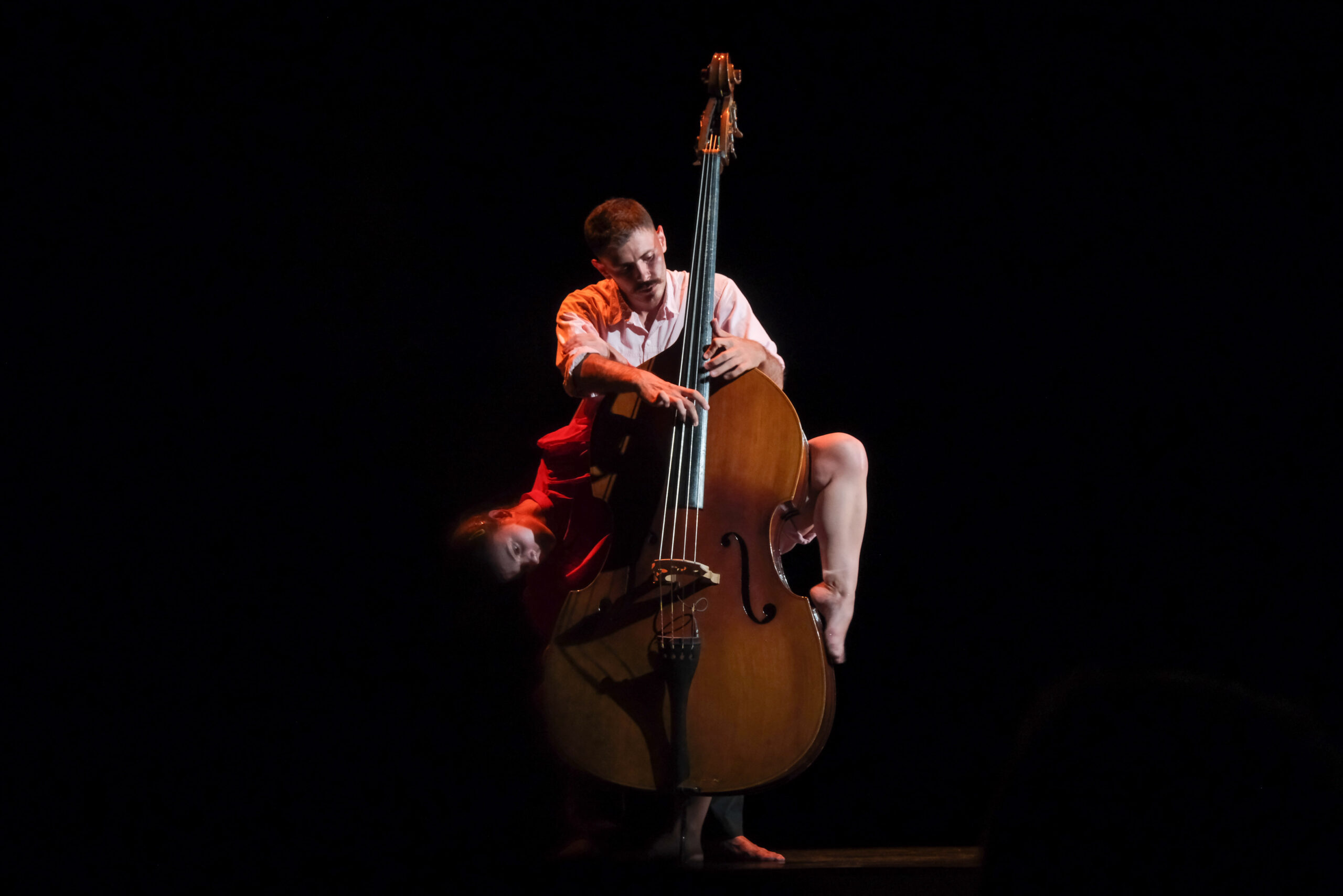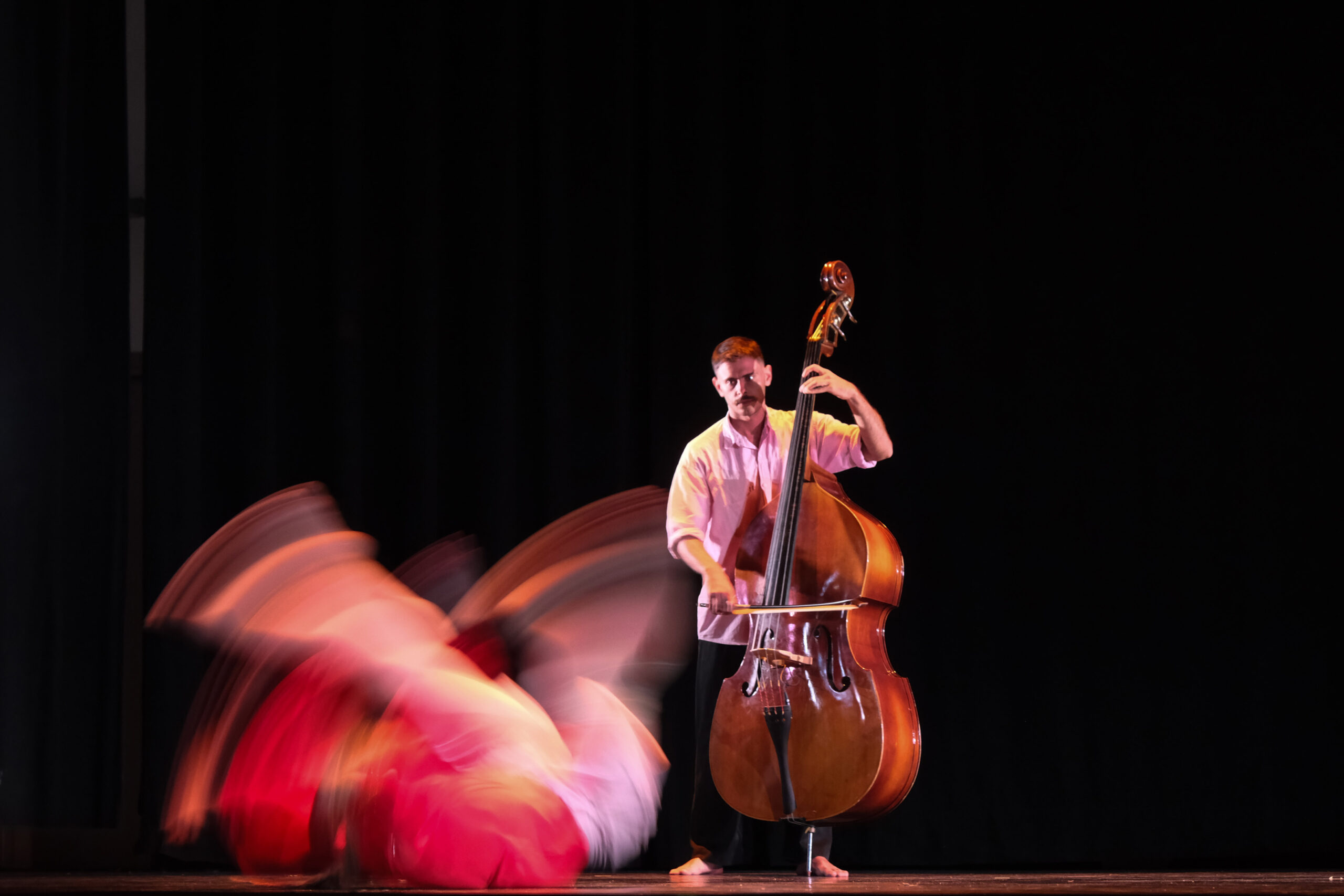 Μέσα από τη σύμπραξη δύο σωμάτων και ενός κοντραμπάσου, η παράσταση εξερεύνησε την αέναη μεταβολή της σχέσης μεταξύ ανθρώπων και ήχου.