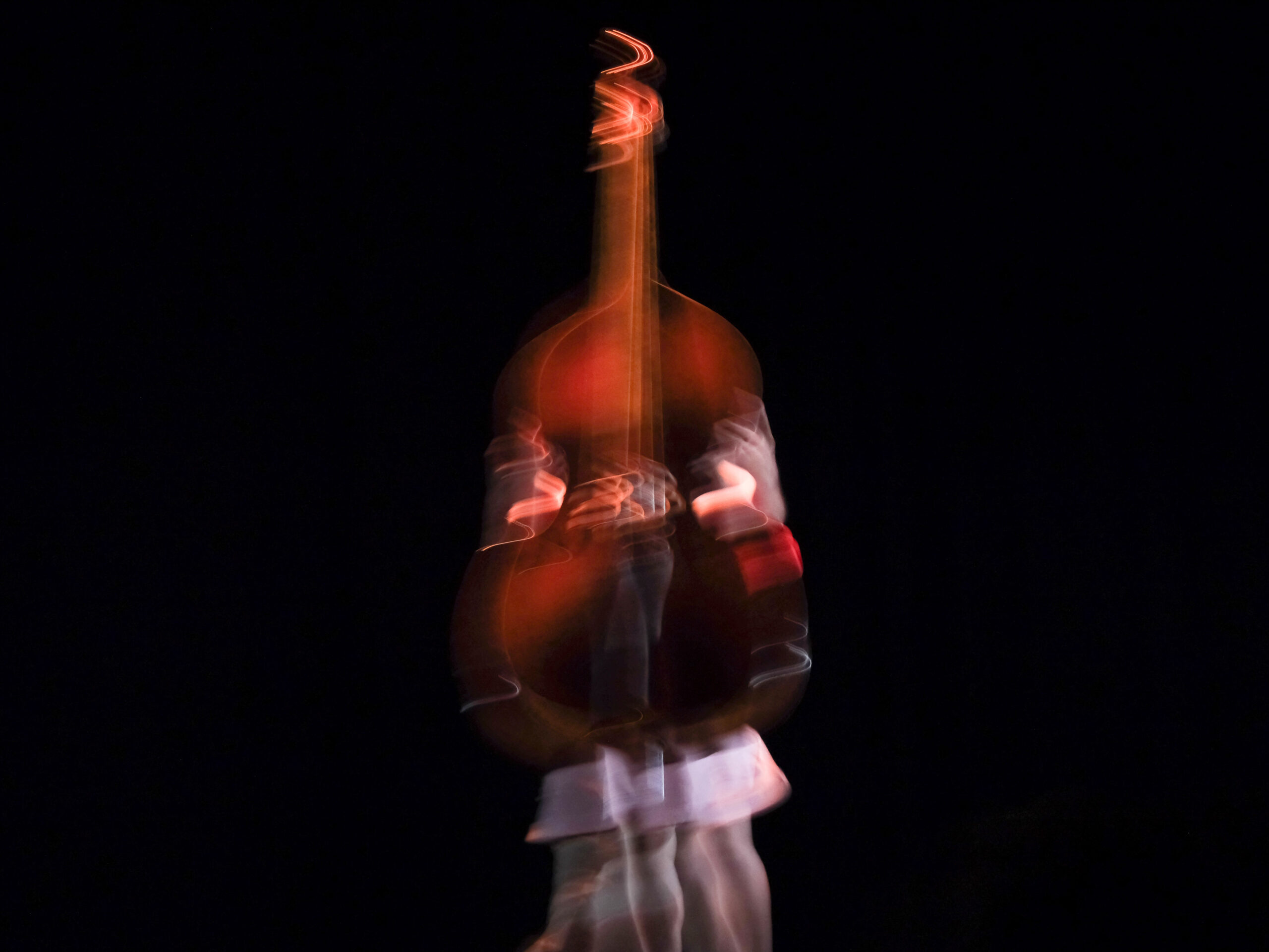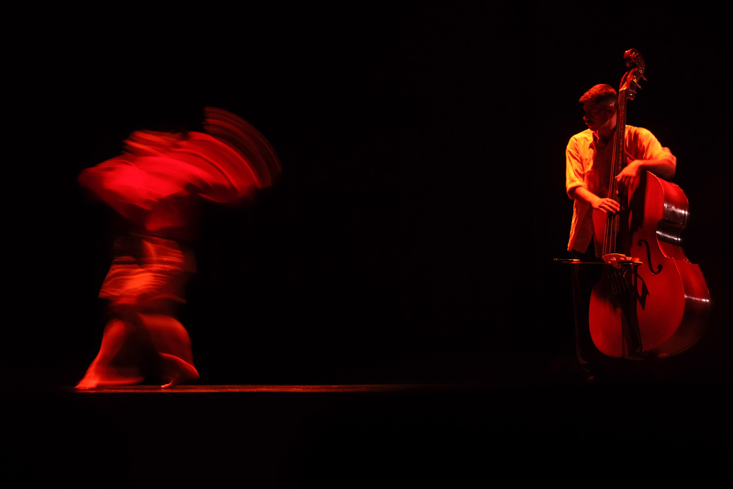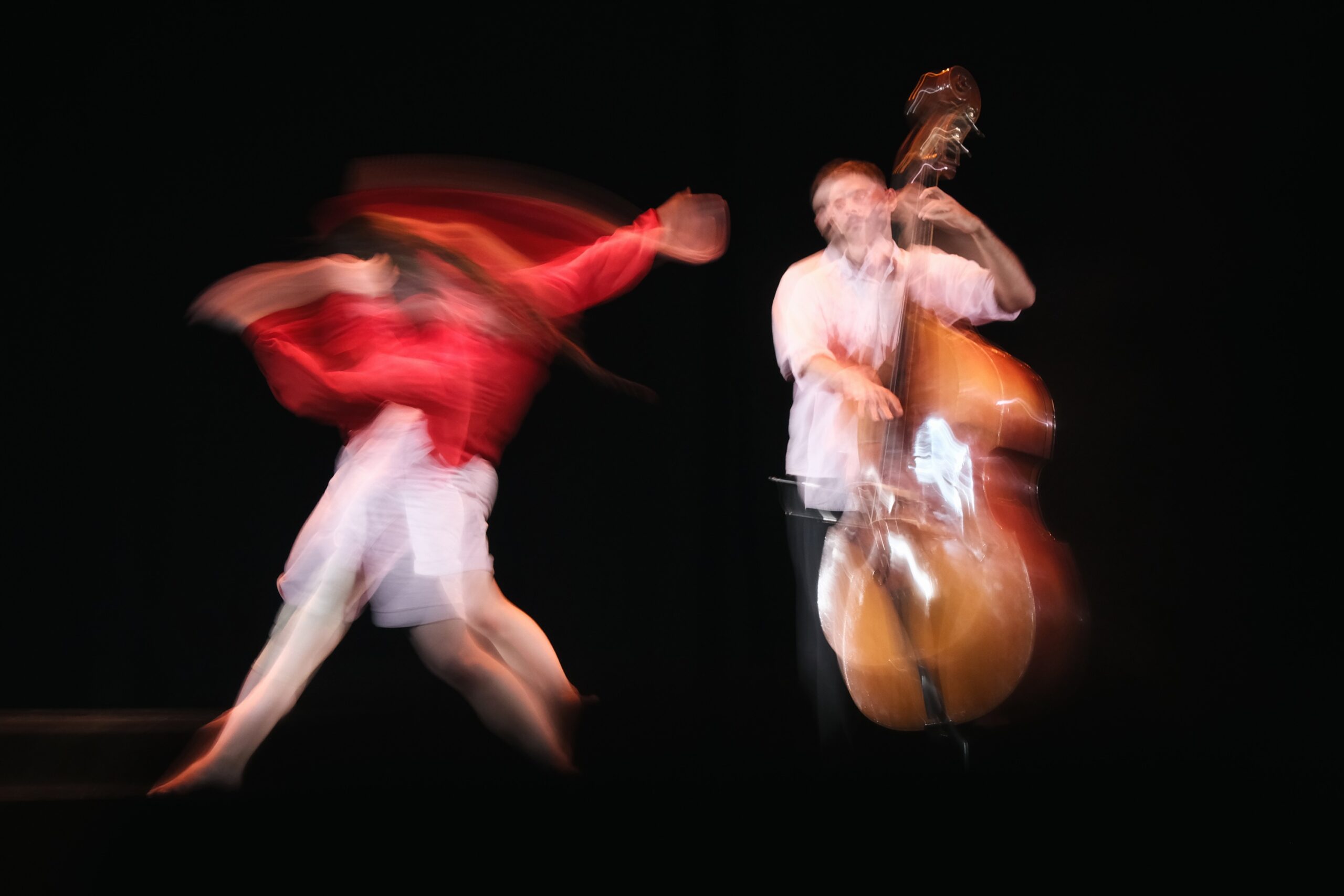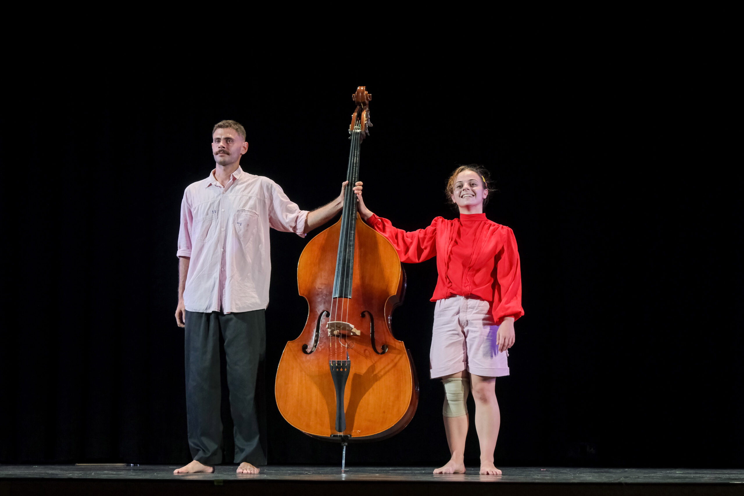 Μέσα από τη σύμπραξη δύο σωμάτων και ενός κοντραμπάσου, η παράσταση εξερεύνησε την αέναη μεταβολή της σχέσης μεταξύ ανθρώπων και ήχου.