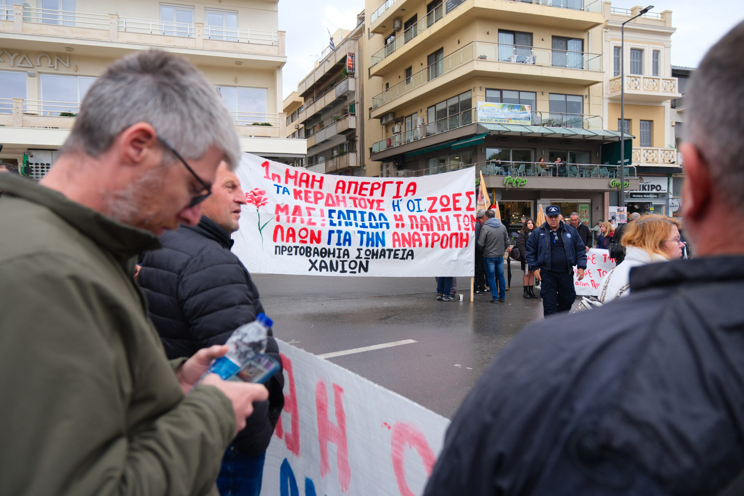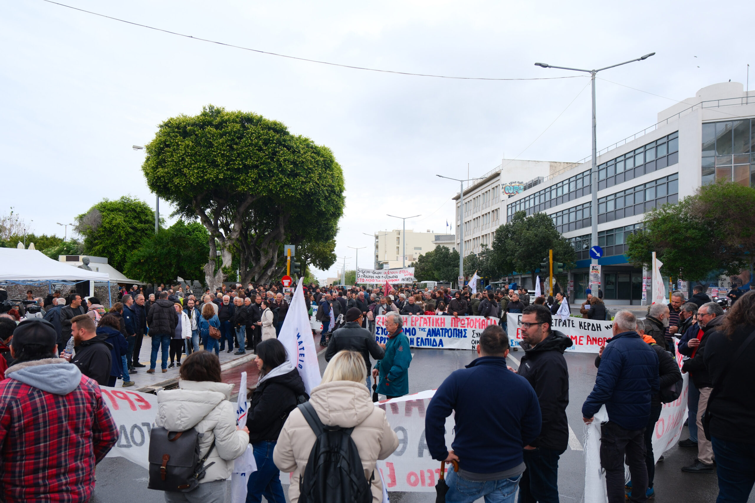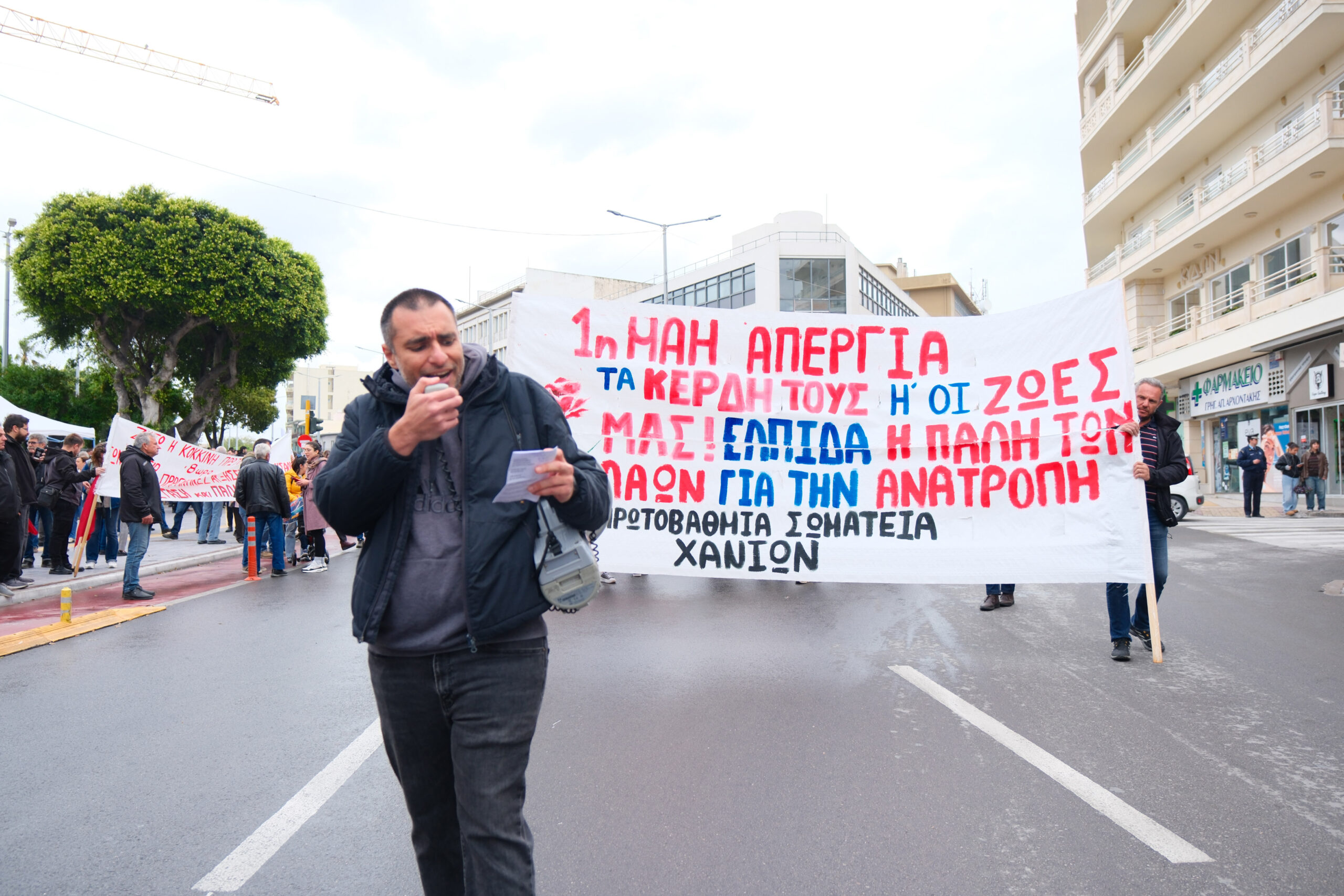 Παρά τις δυσμενείς καιρικές συνθήκες, εκατοντάδες εργαζόμενοι, φοιτητές και πολίτες όλων των ηλικιών έδωσαν μαζικό παρών στην απεργιακή κινητοποίηση της Πρωτομαγιάς, την Πέμπτη 1η Μαΐου, στις 10 το πρωί, στην Πλατεία Δημοτικής Αγοράς στα Χανιά. Το κάλεσμα απηύθυναν εργατικά σωματεία και συλλογικότητες, σε μια ημέρα που τιμάται η ιστορική μνήμη των αγώνων της εργατικής τάξης, αλλά και εκφράζεται η σύγχρονη αγωνία για καλύτερες συνθήκες εργασίας και ζωής.