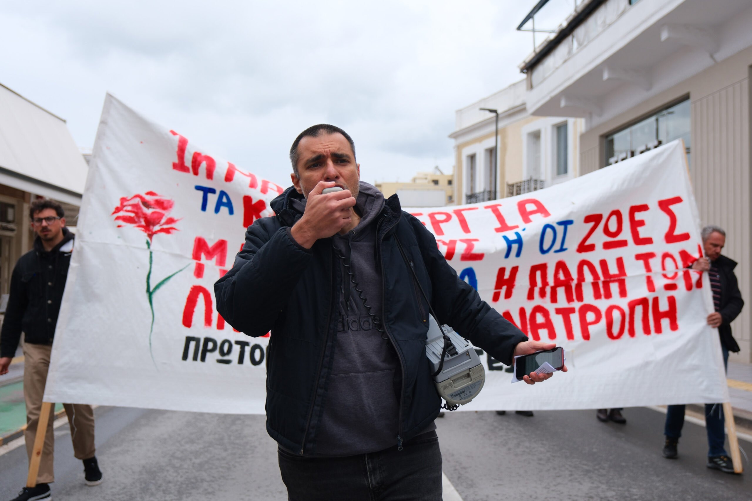 Ο πρόεδρος του Συνδικάτου Οικοδόμων Χανίων, Μανώλης Ξανθουδάκης, στην ομιλία του, ανέφερε χαρακτηριστικά: