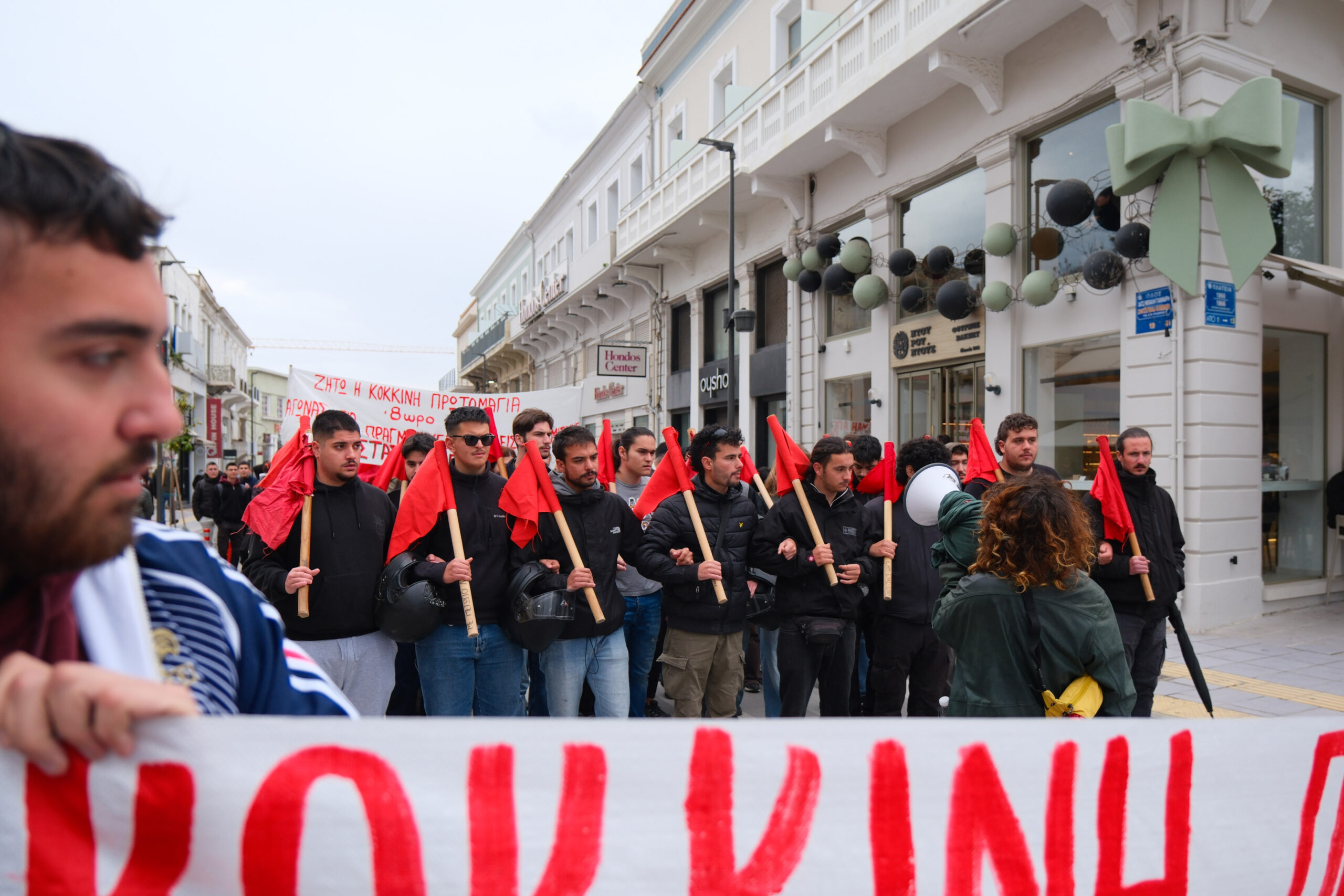 «Παίρνουμε τη σκυτάλη σήμερα μετά από τις συγκλονιστικές απεργιακές κινητοποιήσεις, ιδιαίτερα στις 28 Φλεβάρη. Τιμάμε τους αγώνες του Σικάγου, της Θεσσαλονίκης του ’36, της Καισαριανής του ’44. Σ