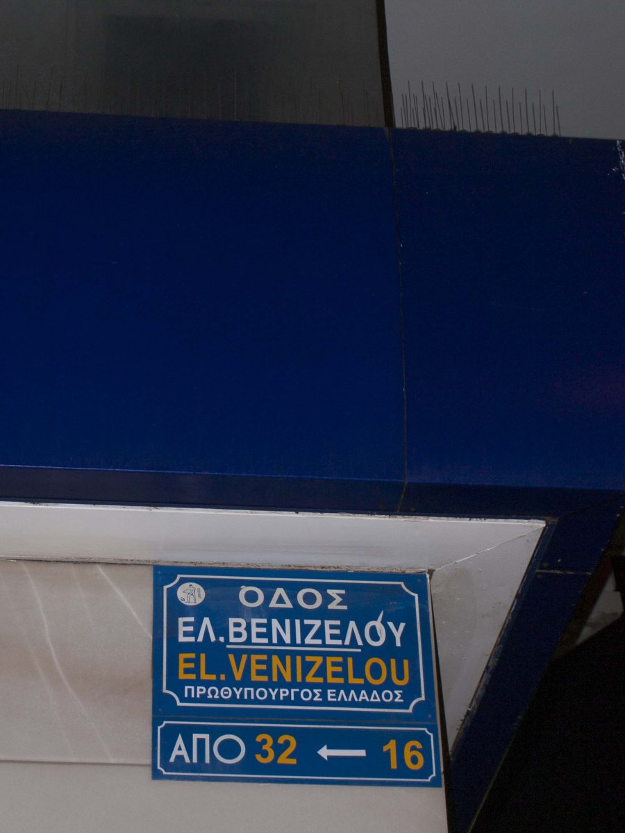 Χανιά, Οδός Ελευθερίου Βενιζέλου και ο μοναδικός τρόπος που σκέφτηκαν οι υπεύθυνοι της Eurobank για να κρατήσουν την “πολύτιμη” ταμπέλα τους καθαρή από τα πουλιά και τα περιστέρια, ήταν να τοποθετήσουν όρθια σύρματα – καρφιά.