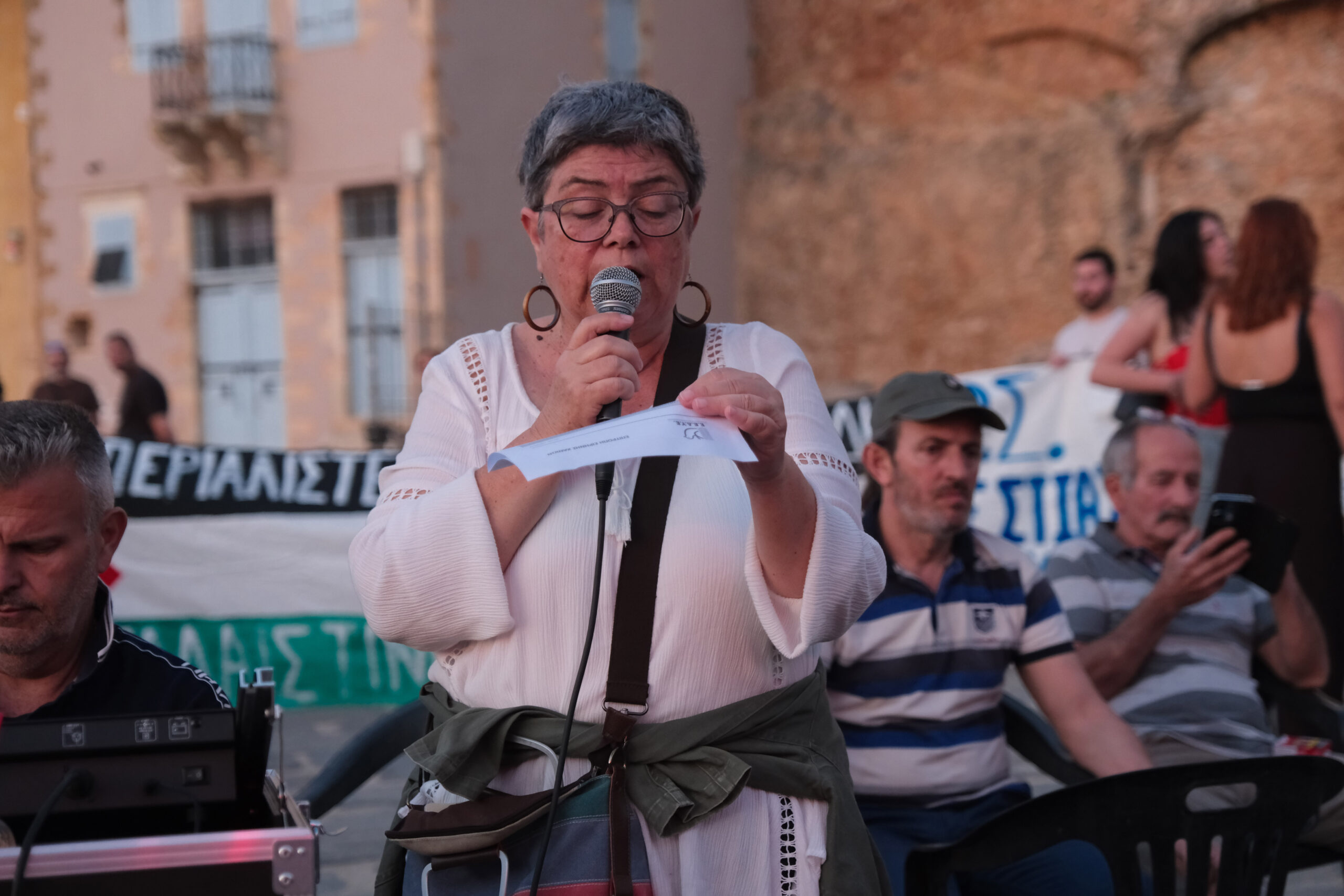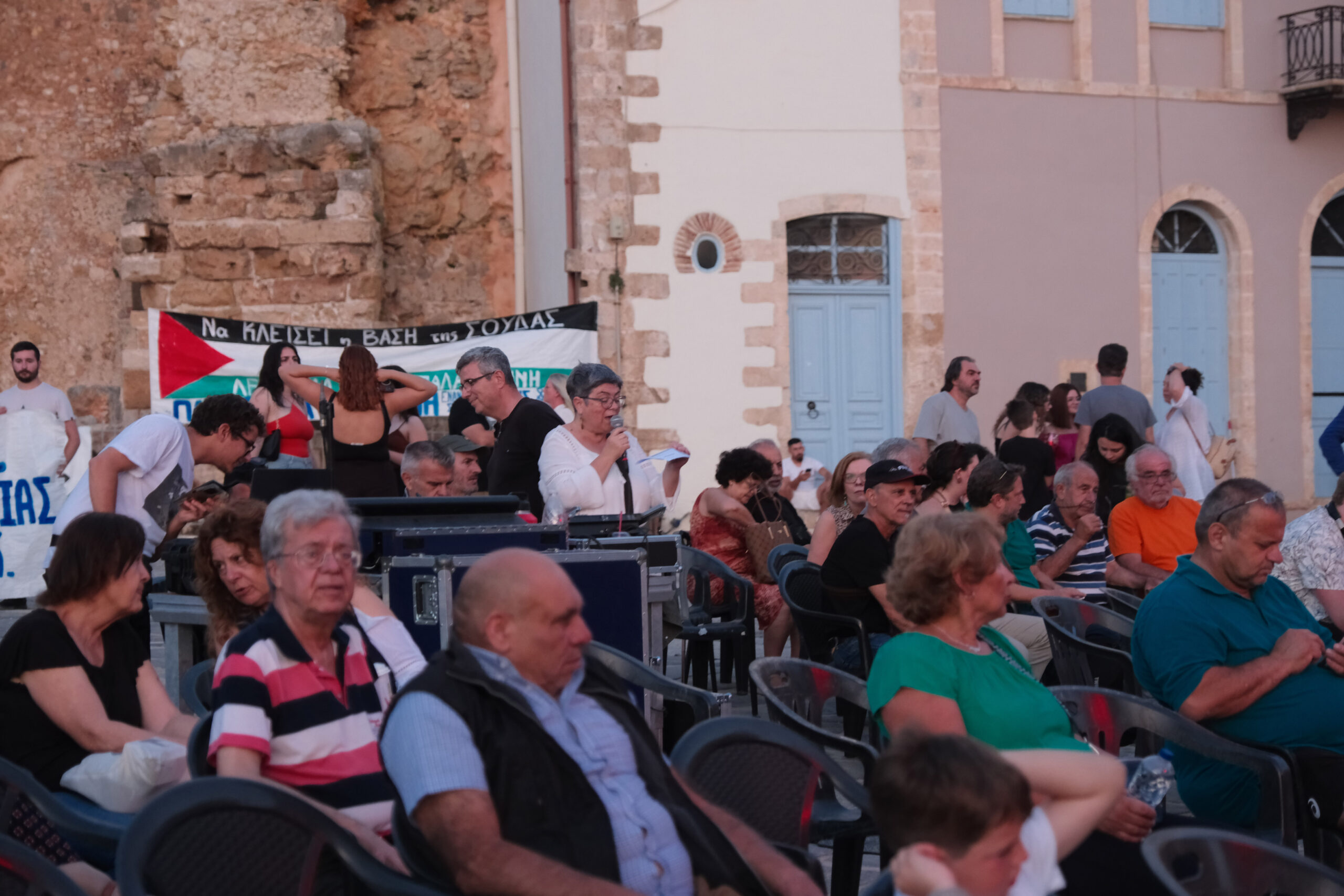 Συγκέντρωση διαμαρτυρίας και συναυλία από την Επιτροπή Ειρήνης Χανίων υπέρ του παλαιστινιακού λαού – Σφοδρή κριτική στην ελληνική κυβέρνηση για τη στήριξη στο Ισραήλ και τη στρατιωτική βάση στη Σούδα