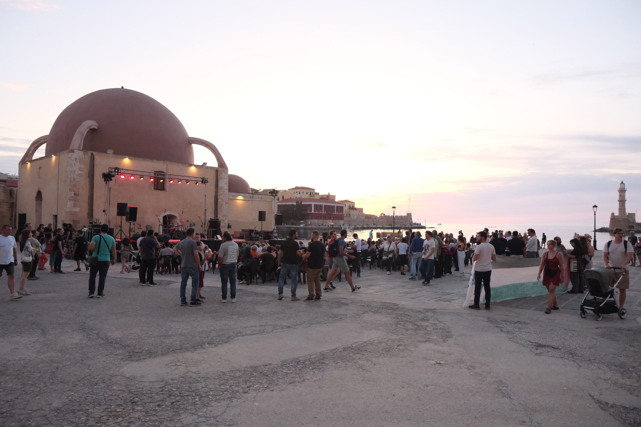 Η εκδήλωση ολοκληρώθηκε με συναυλία στο Παλιό Λιμάνι, όπου καλλιτέχνες και συμμετέχοντες τραγούδησαν συνθήματα ειρήνης και ελευθερίας, στέλνοντας ένα δυνατό μήνυμα αλληλεγγύης από τα Χανιά προς τη Γάζα.