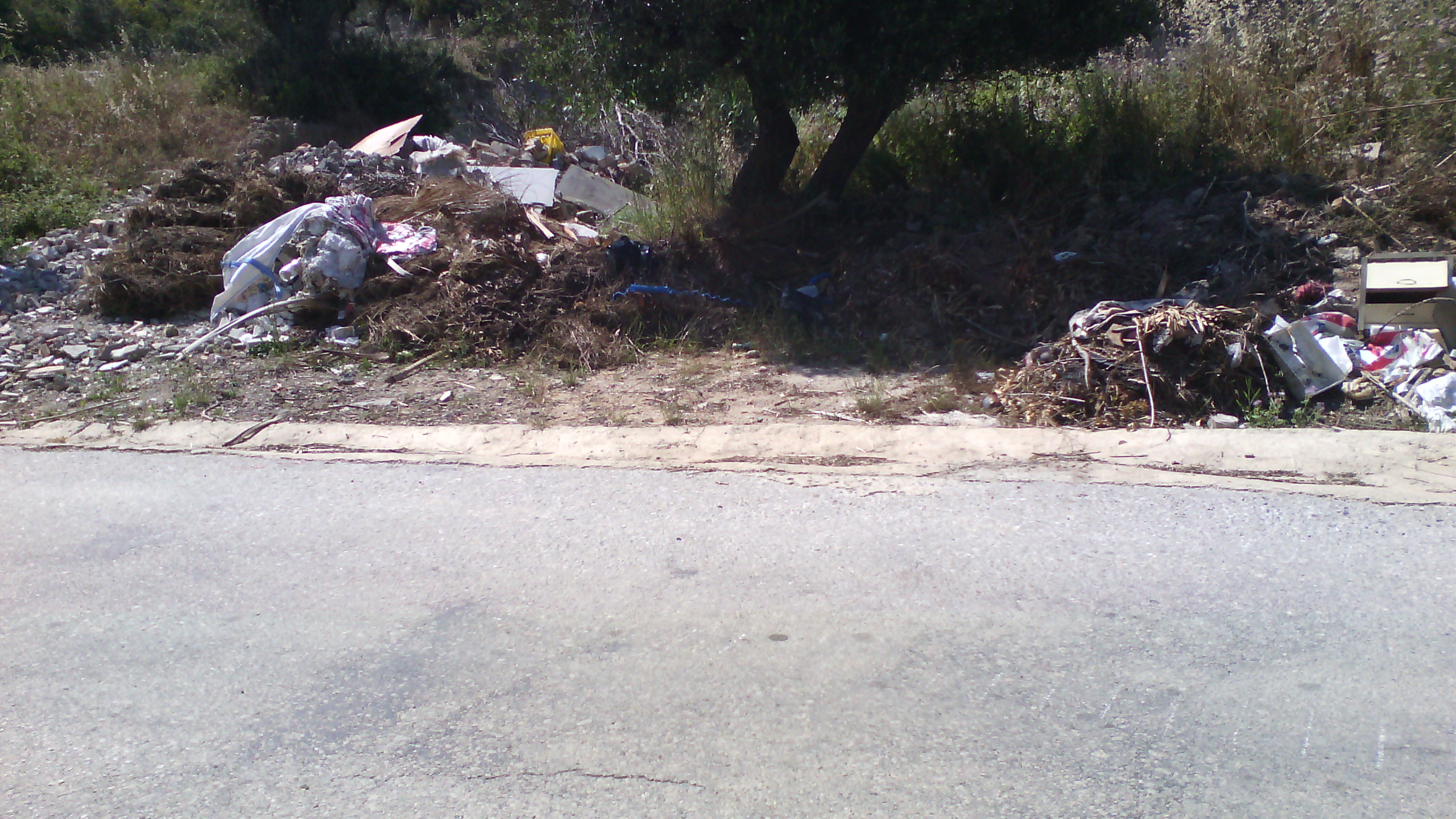 Σκουπίδια κάθε είδους απλώνονται εκεί, δίπλα στον δρόμο. Σωροί ολόκληροι σε μια απόσταση 150 μέτρων.