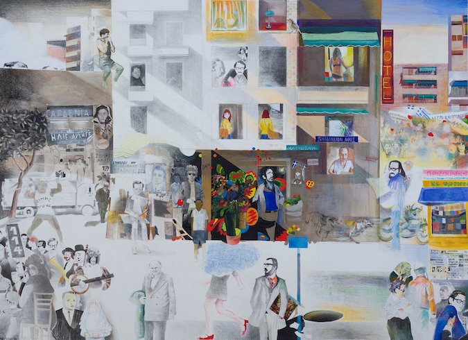 Εμψυχωτής και άτυπος επιμελητής της έκθεσης που φέρει τον τίτλο «στο υπόγειο νησί του» είναι οζωγράφος Αγγελος Ραζής –που γεννήθηκε το 1975 στη Μυτιλήνη και επέλεξε να φτιάξει μια«τοιχογραφία» (διαστάσεων 55 Χ 75 εκ.) με τα πρόσωπα και τα γεγονότα μιας διαδρομής.
