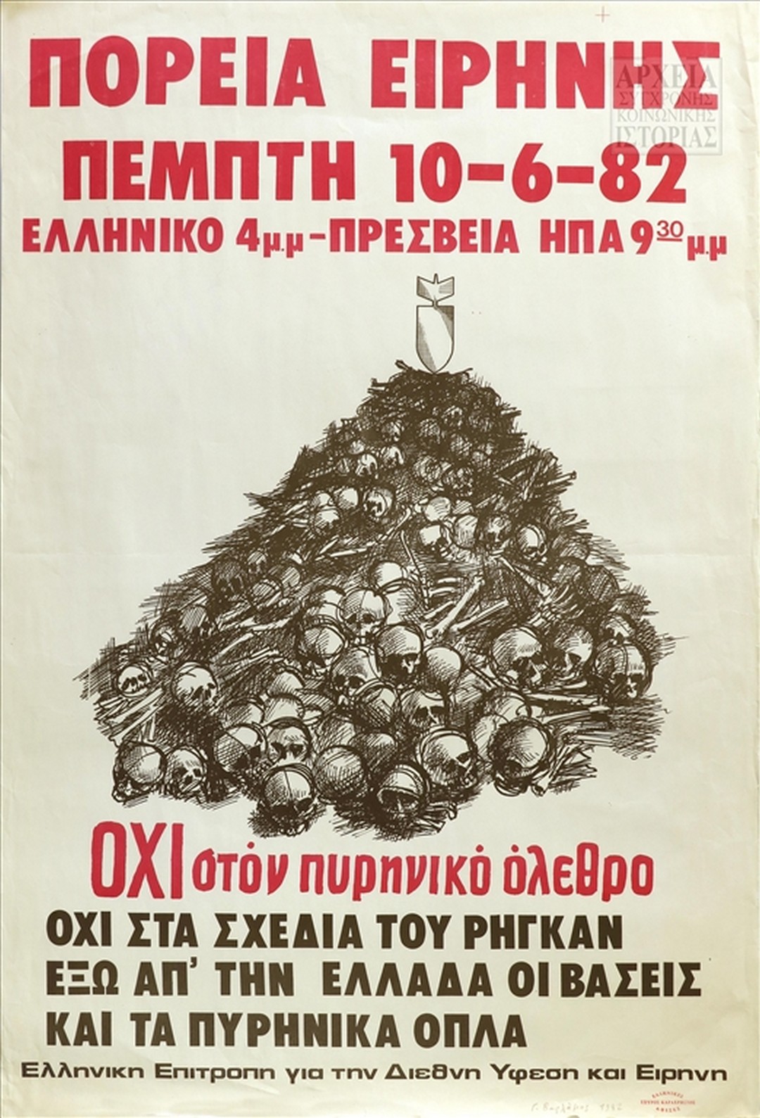 Τίτλος Πορεία Ειρήνης. Πέμπτη 10-6-1982. Όχι στον πυρηνικό όλεθρο