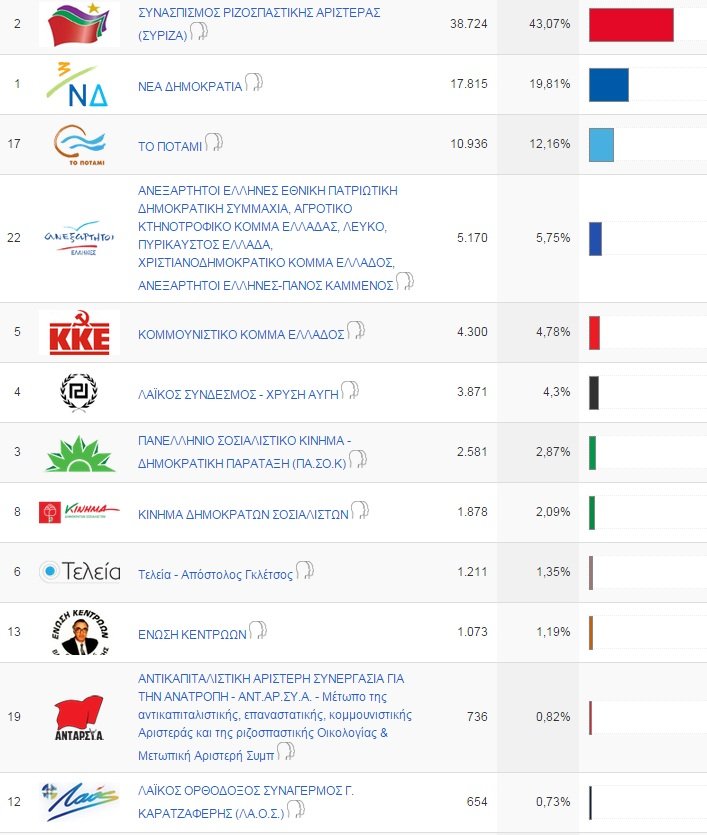 Στα Χανιά τώρα, τα υψηλότερα ποσοστά του ο ΣΥΡΙΖΑ τα κατέγραψε στα εξής εκλογικά τμήματα: