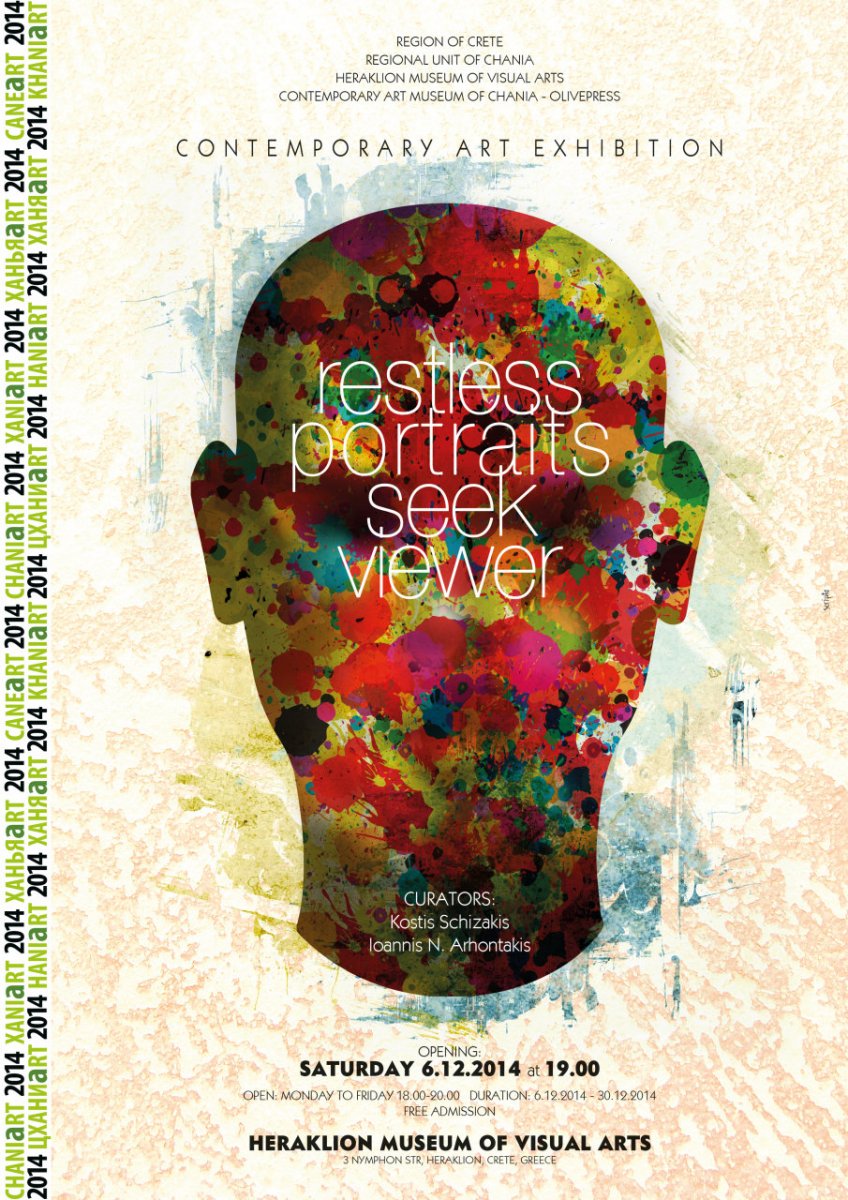 «Το πρόγραμμα “ΧΑΝΙaRT 2014 – Εικαστικές Διαδρομές στο Νομό Χανίων” με πνεύμα εξωστρέφειας διοργανώνει μια σειρά από εικαστικές δράσεις και εκθέσεις για την παρουσίαση και προβολή των εικαστικών δημιουργών του Νομού και του καλλιτεχνικού τους έργου έξω από τα περιορισμένα όρια του τόπου. Ξεχωριστή προσοχή δίνεται στο έργο όλων των δημιουργών που έχουν αφετηρία δράσεων το Νομό Χανίων και στις δυνατότητες παρουσίασής του σε κομβικά εικαστικά κέντρα και διεθνή φόρα με στόχο την ανταλλαγή θέσεων, απόψεων και εμπειριών με τους καλλιτέχνες άλλων τόπων και άλλων αισθητικών ερεθισμάτων. Με γνώμονα λοιπόν, το δημιουργικό πολιτιστικό πνεύμα εξωστρέφειας και συνεργασίας το πρόγραμμα ΧΑΝΙaRT 2014 συνδιοργανώνει με το Μουσείο Εικαστικών Τεχνών Ηρακλείου την έκθεση σύγχρονης τέχνης «Ανήσυχα Πορτραίτα ζητούν Αναγνώστη» στην έδρα του Μουσείου Εικαστικών Τεχνών στο Ηράκλειο (Νυμφών 3, Πόρος) με μια ανοικτή συμμετοχική διαδικασία που οδηγεί σε πλατιά δημιουργική δυνατότητα αλληλοκατανόησης των εικαστικών αναζητήσεων ντόπιων, ελλήνων και διεθνών καλλιτεχνών σε ένα θέμα πολυσχιδές, δυναμικό και πολύπλευρα εκφραστικό, την καταγραφή του ανθρώπινου χαρακτήρα μέσω του προσώπου: το Πορτραίτο».