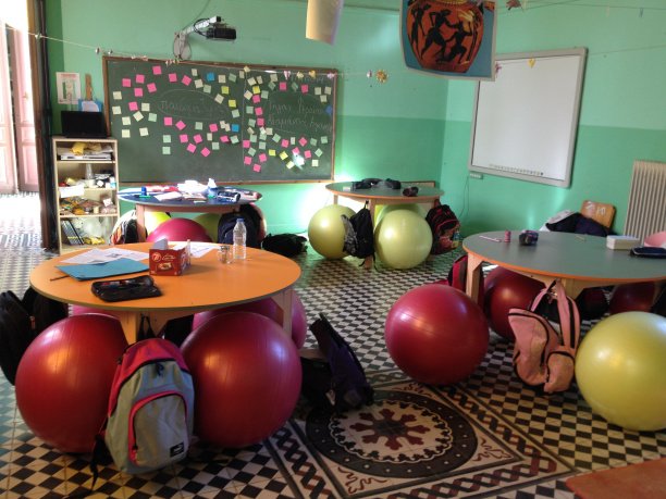 Μία σημαντική καινοτομία ξεκινούν να εφαρμόζουν στο 4/θέσιο δημοτικό σχολείο στο Φουρφουρά Ρεθύμνου από την εκπαιδευτική ομάδα του πρωτοπόρου Άγγελου Πατσιού. Πλέον, δε θα υπάρχουν καρέκλες μέσα στις τάξεις. Αντ’ αυτών οι μαθητές θα κάθονται σε ελβετικές μπάλες γυμναστικής οι οποίες θεωρούνται πιο κατάλληλες και πιο υγιεινές. Διαβάστε το σχετικό κείμενο που αναρτήθηκε στην ιστοσελίδα του σχολείου και δείτε τις φωτό: