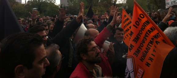 Η δήλωση του εντεταλμένου της Γερμανίδας καγκελαρίου, κ. Φούχτελ, ο οποίος τάχθηκε ξεκάθαρα υπέρ των απολύσεων είχε ως αποτέλεσμα να γίνει στόχος των εξοργισμένων υπαλλήλων της τοπικής αυτοδιοίκησης στη Θεσσαλονίκη και σήμερανα βρεθεί περικυκλωμένοςστο συνεδριακό κέντρο της ΔΕΘ, όπου βρίσκεται για να μιλήσει στο ελληνογερμανικό συνέδριο.