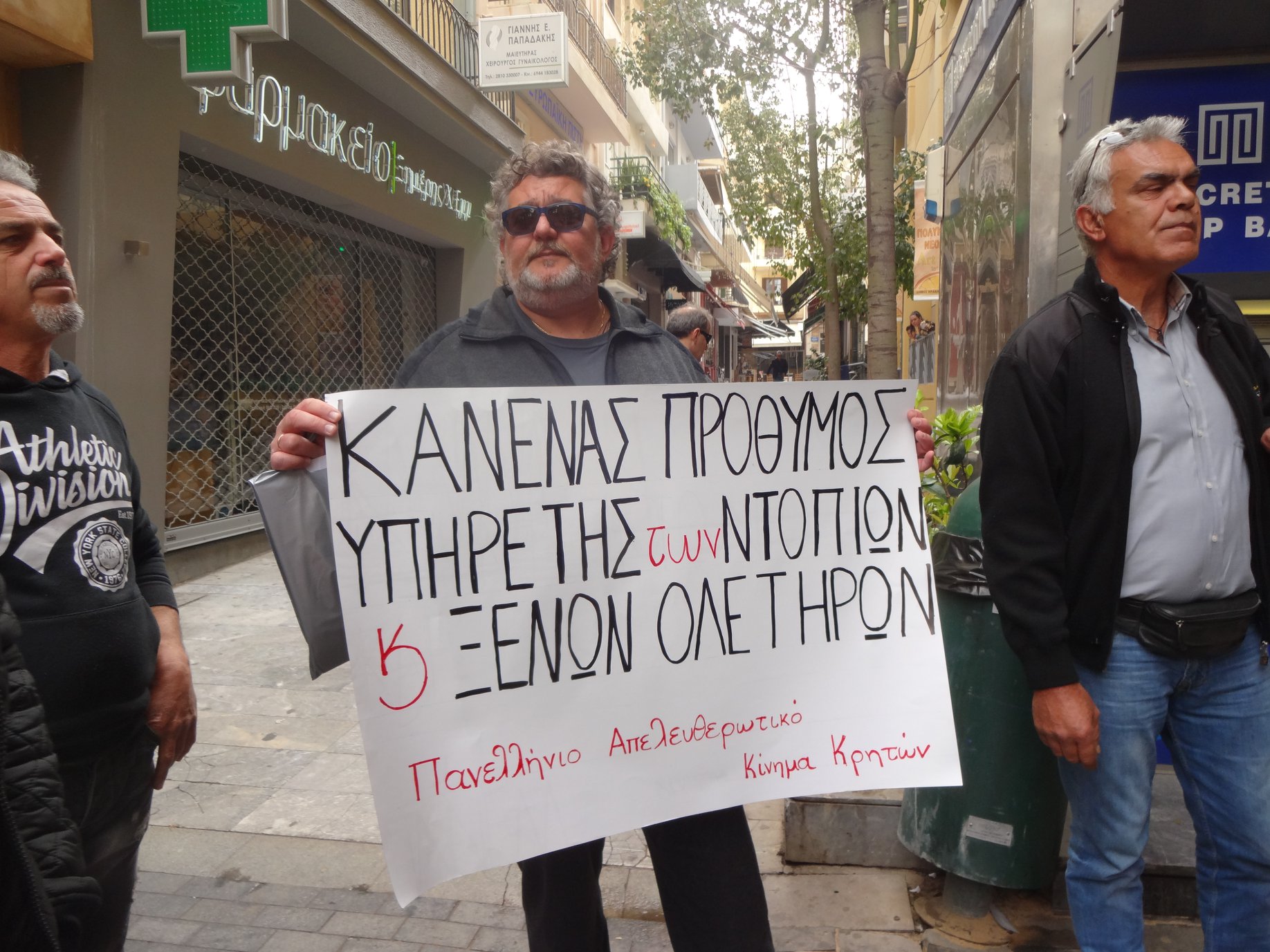 Ειδικά για την περιφέρεια της Κρήτης απαιτούμε απο τους μέχρι στιγμής πιστοποιημένους συναδέλφους σας, καθώς και από όλους τους άλλους που μας διαφεύγουν για την ώρα: Νεκτάριο Ζουμπά (Χανιά), Μιχαήλ Σαββάκη (Χερσόνησο) και Ιωάννα Σφίγγα (Ηράκλειο), να μην επιχειρήσουν να υλοποιήσουν οποιοδήποτε πλειστηριασμό, στις παρούσες κατοχικές συνθήκες που αφενός κρίνεται παράνομος και αφετέρου, αποδεδειγμένα, πλήττονται κατεξοχήν τα λαϊκά νοικοκυριά, γιατί θα συναντήσουν την αντίδρασή μας και θα εισπράξουν τη γενική κατακραυγή.