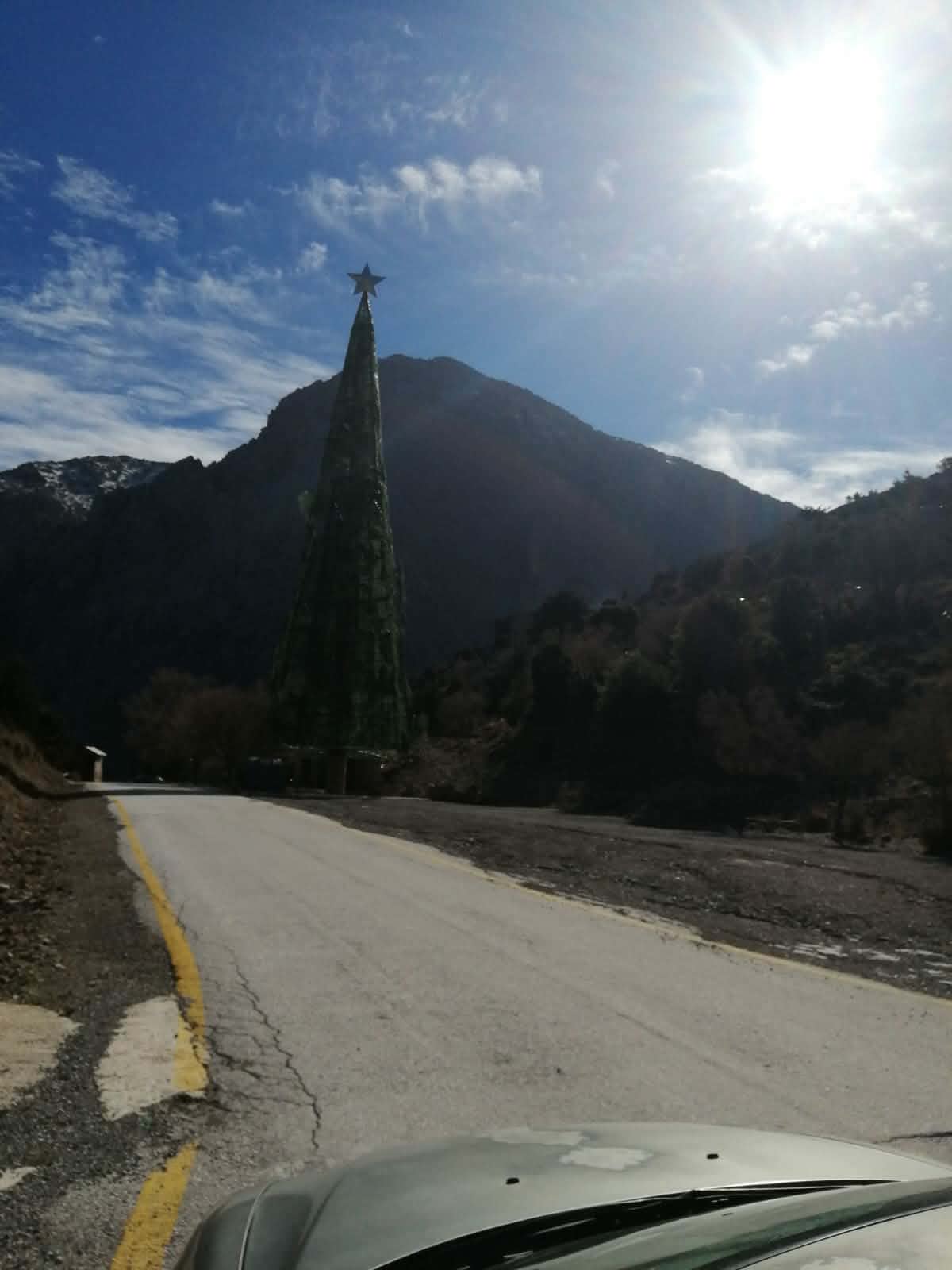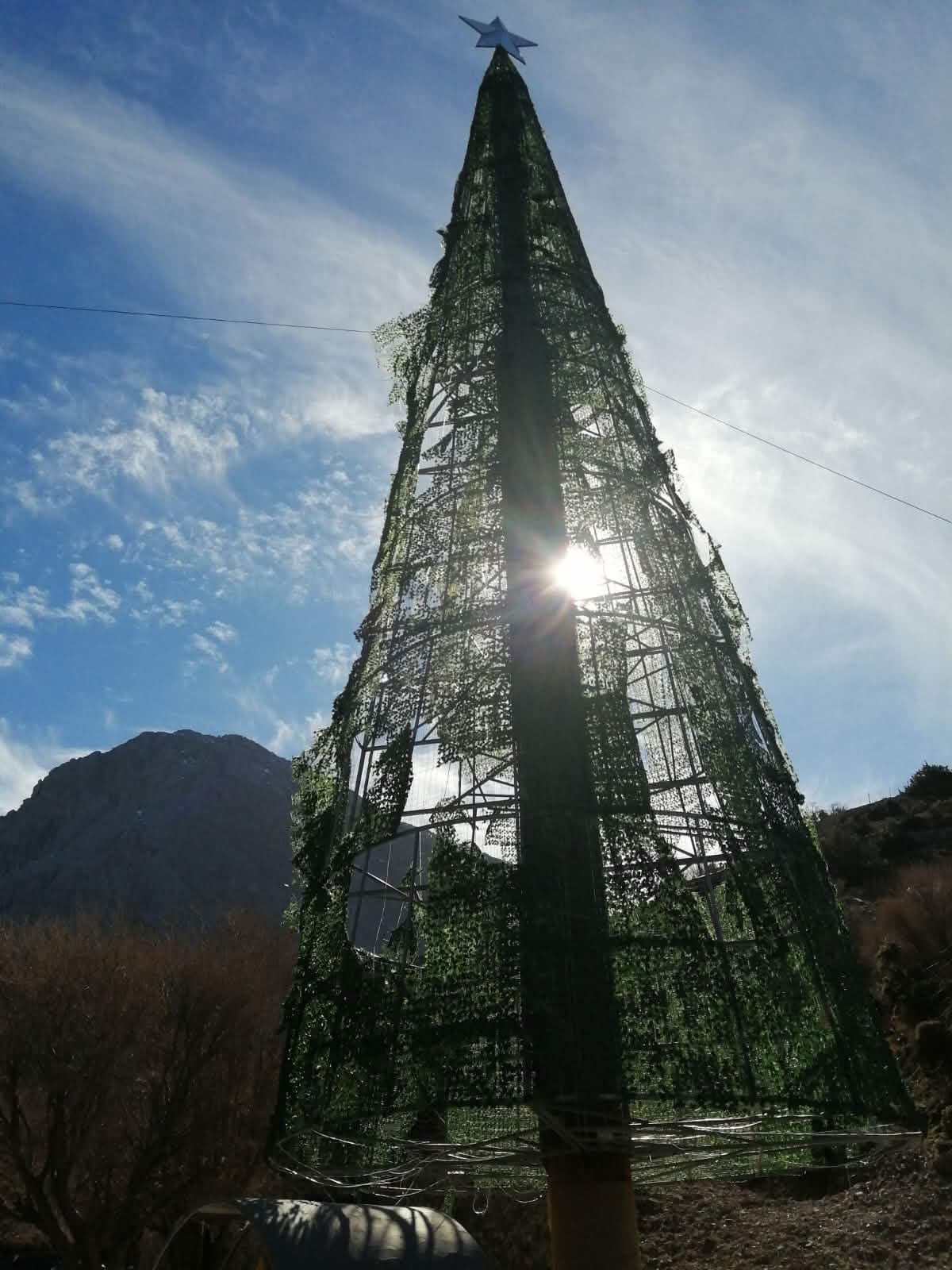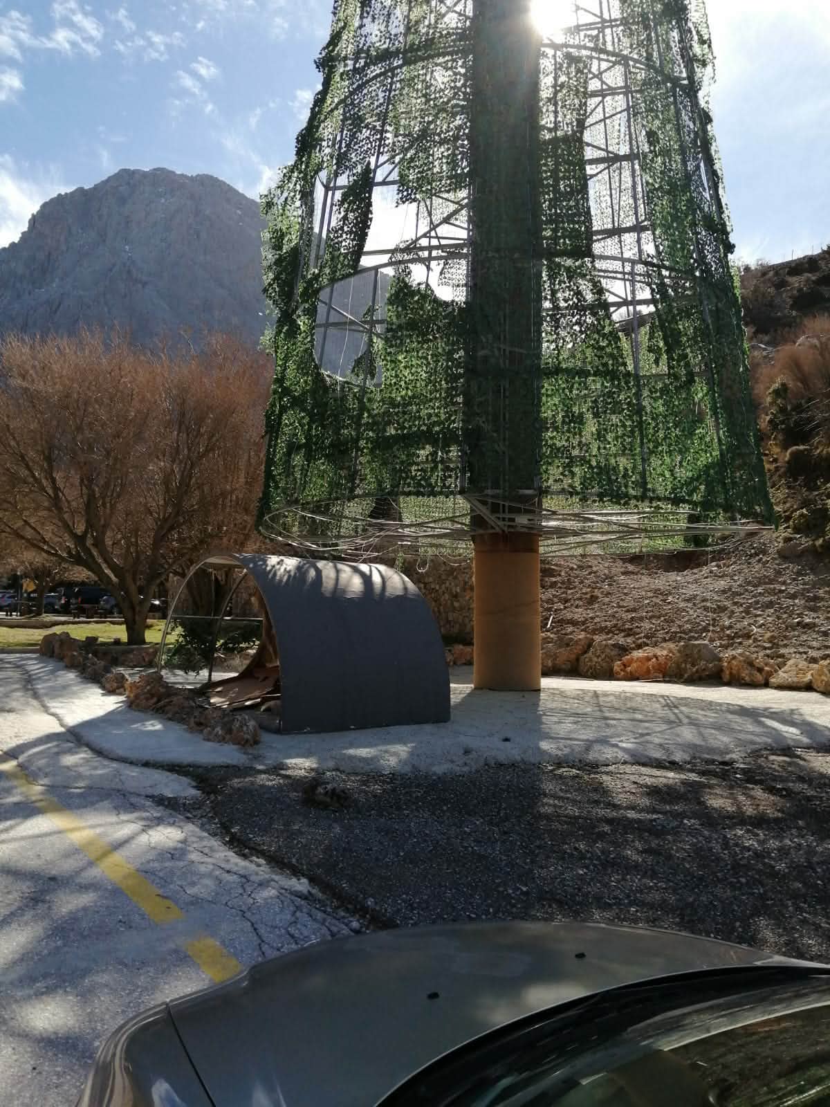 Το τραγικό είναι ότι λίγα μέτρα από την σιδηρά κατασκευή υπάρχουν πανύψηλα έλατα που θα μπορούσαν με τον κατάλληλο στολισμό να χρησιμοποιηθούν για την εορταστική περίοδο. Όχι όμως, στήθηκε αυτό το μεταλλικό δέντρο.