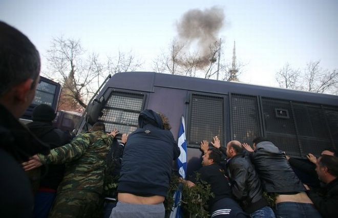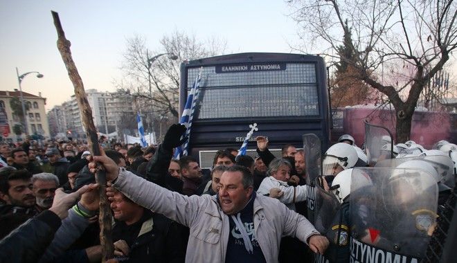 Άγρια επεισόδια εκτυλίχθηκαν χθες το απόγευμα στην Θεσσαλονίκη, έξω από το Συνεδριακό Κέντρο «Ι. Βελλίδης», όπου είχαν προγραμματιστεί τα εγκαίνια της έκθεσης «AGROTICA».