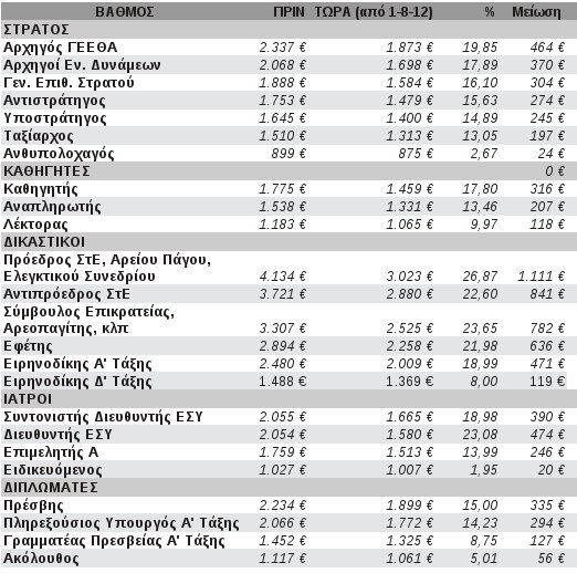 • Από 2,9% έως 20% στους βασικούς μισθούς στο Στρατό και τα Σώματα Ασφαλείας