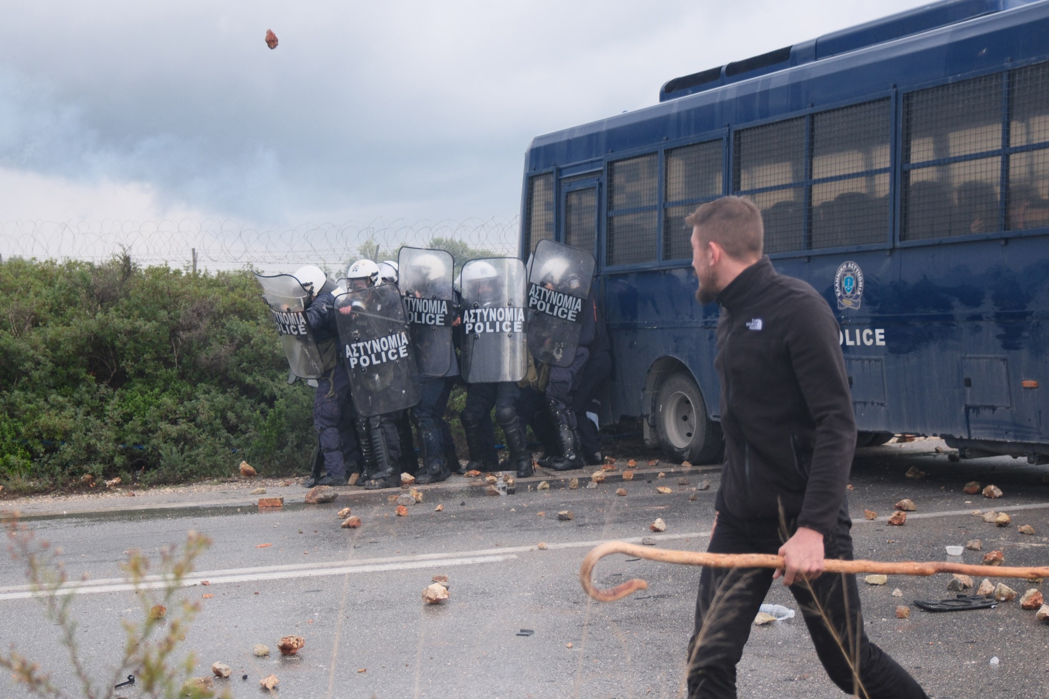 Όταν έφτασαν και διαπίστωσαν ότι η αστυνομία είχε αποκλείσει την πρόσβαση, προκλήθηκε εκνευρισμός, χωρίς όμως αρχικά να ασκηθεί βία. Εκπρόσωποι των κτηνοτρόφων έσπευσαν να διαπραγματευτούν, εξηγώντας τους λόγους για τους οποίους έπρεπε να τους επιτραπεί η διέλευση. Στην άρνηση της αστυνομίας, η ένταση κλιμακώθηκε και ξεκίνησαν οι απωθήσεις. Τότε ξεκίνησε η σύγκρουση, με την αστυνομία να κάνει χρήση φυσούνας και, στη συνέχεια, να ρίχνει σωρεία δακρυγόνων που έπνιξαν το σύνολο των διαδηλωτών, αλλά και τους εργαζόμενους στα ΜΜΕ (δημοσιογράφους, φωτογράφους, εικονολήπτες), οι οποίοι δέχτηκαν χημικά αδιακρίτως.