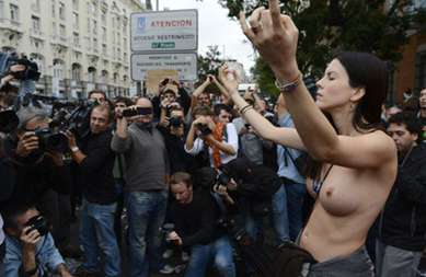 Αυτή είναι η γυμνόστηθη «αγανακτισμένη» διαδηλώτρια για την οποία μιλάνε όλοι