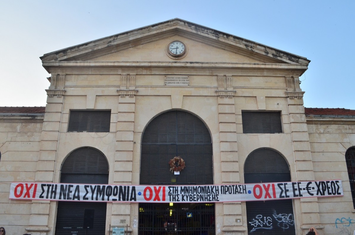 “Στο δημοψήφισμα ψηφίζουμε ΟΧΙ σε κάθε μνημόνιο και σε κάθε συμφωνία με τους θεσμούς” είπε η νεολαία των Χανίων η οποία είχε την ευθύνη της διοργάνωσης.