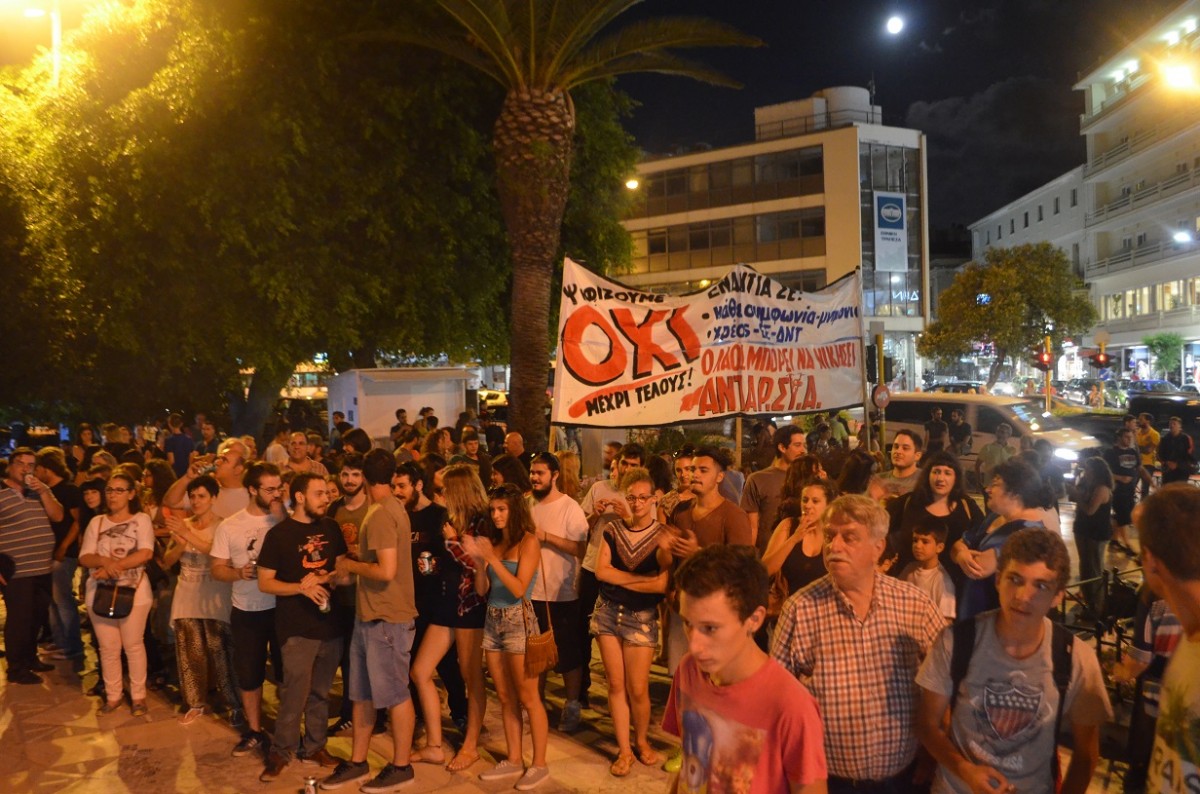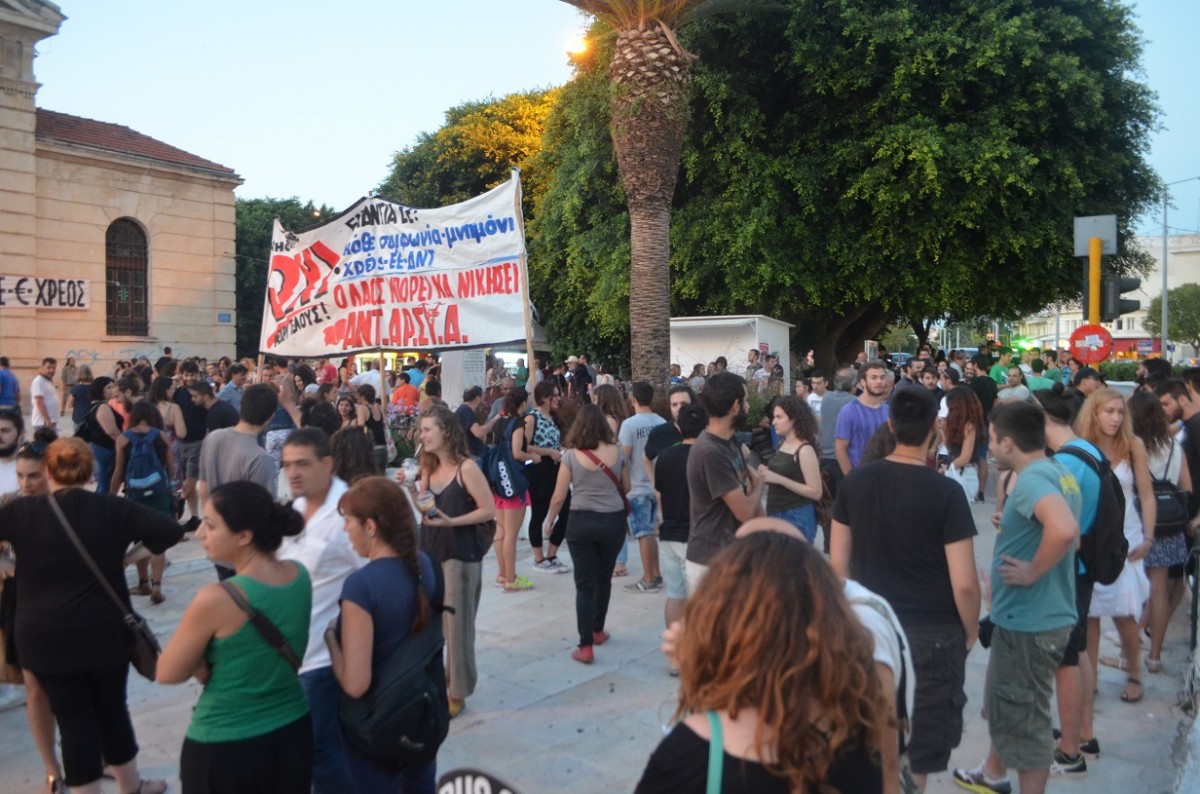 Νέοι εργαζόμενοι, φοιτητές, μαθητές, άνεργοι τοποθετήθηκαν πάνω στο ζήτημα του δημοψηφίσματος ζητώντας την υπερψήφιση του “Όχι” στο δημοψήφισμα της Κυριακής. Στη συγκέντρωση συμμετείχαν μεταξύ άλλων και η “Επιτροπή Χανίων υπέρ του ΟΧΙ στο δημοψήφισμα”, η συλλογικότητα “Ανυπόταχτοι Μαθητές”, η ΑΝΤΑΡΣΥΑ και μέλη του ΣΥΡΙΖΑ.