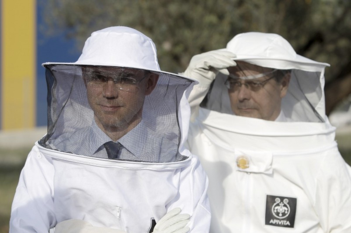 Στολή μελισσοκόμου «ενδύθηκε» ο υπουργός Οικονομίας Γιώργος Σταθάκης και ο Φινλανδός αντιπρόεδρος της Ευρωπαϊκής Επιτροπής Γ. Κατάινεν ο οποίος βρίσκεται για επίσημη επίσκεψη στην Ελλάδα και αύριο θα συναντηθεί με τον πρωθυπουργό.