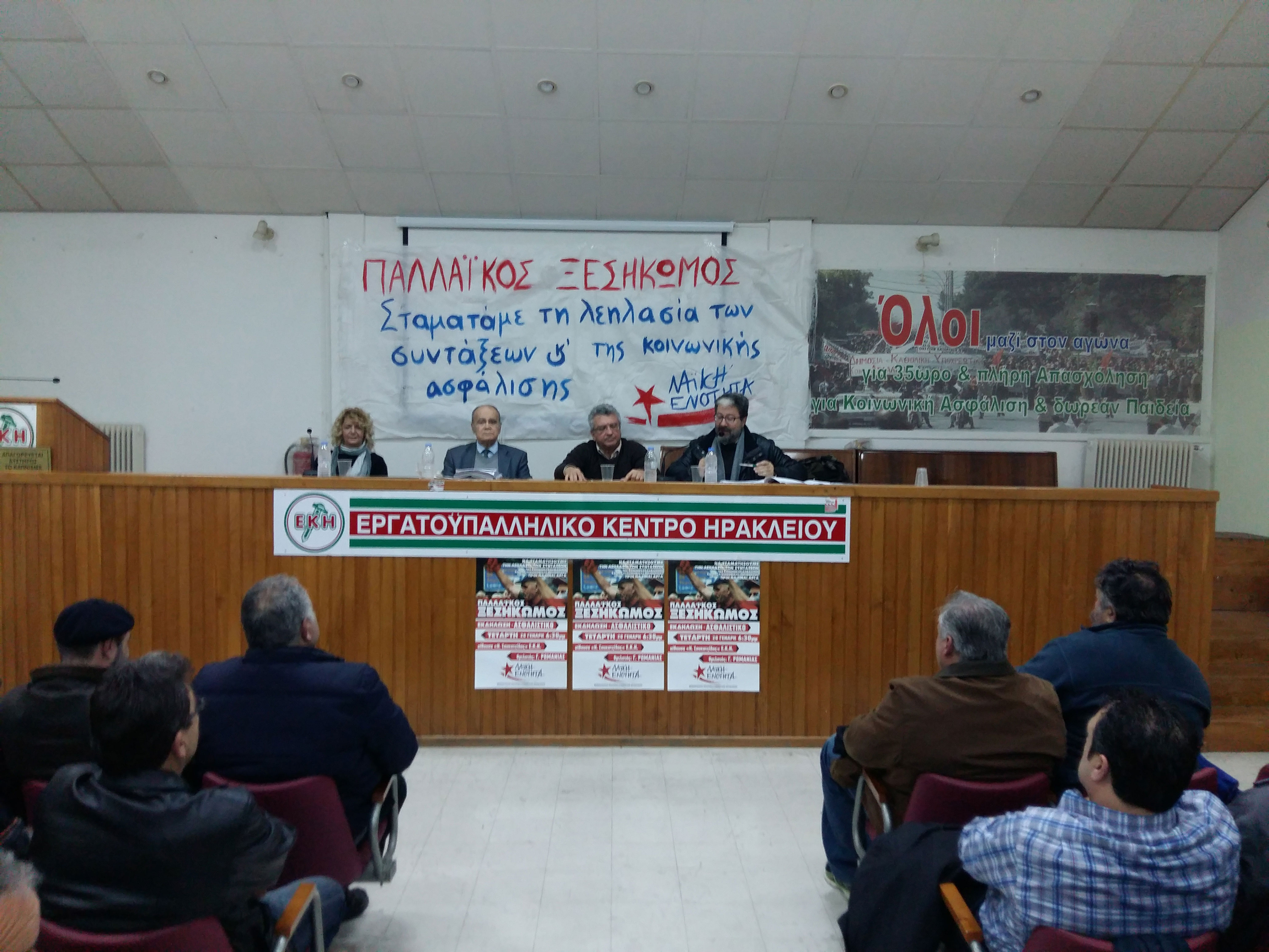 Πραγματοποιήθηκε, χθες Τετάρτη 20 Ιανουαρίου, με επιτυχία στην κατάμεστη αίθουσα συνελεύσεων «Ν. Σουκατζίδης» του Ε.Κ. Ηρακλείου η εκδήλωση – συζήτηση που διοργάνωσε το Νομαρχιακό Πολιτικό Συμβούλιο Ηρακλείου της ΛΑ.Ε. με ομιλητή τον Γ. Ρωμανιά.