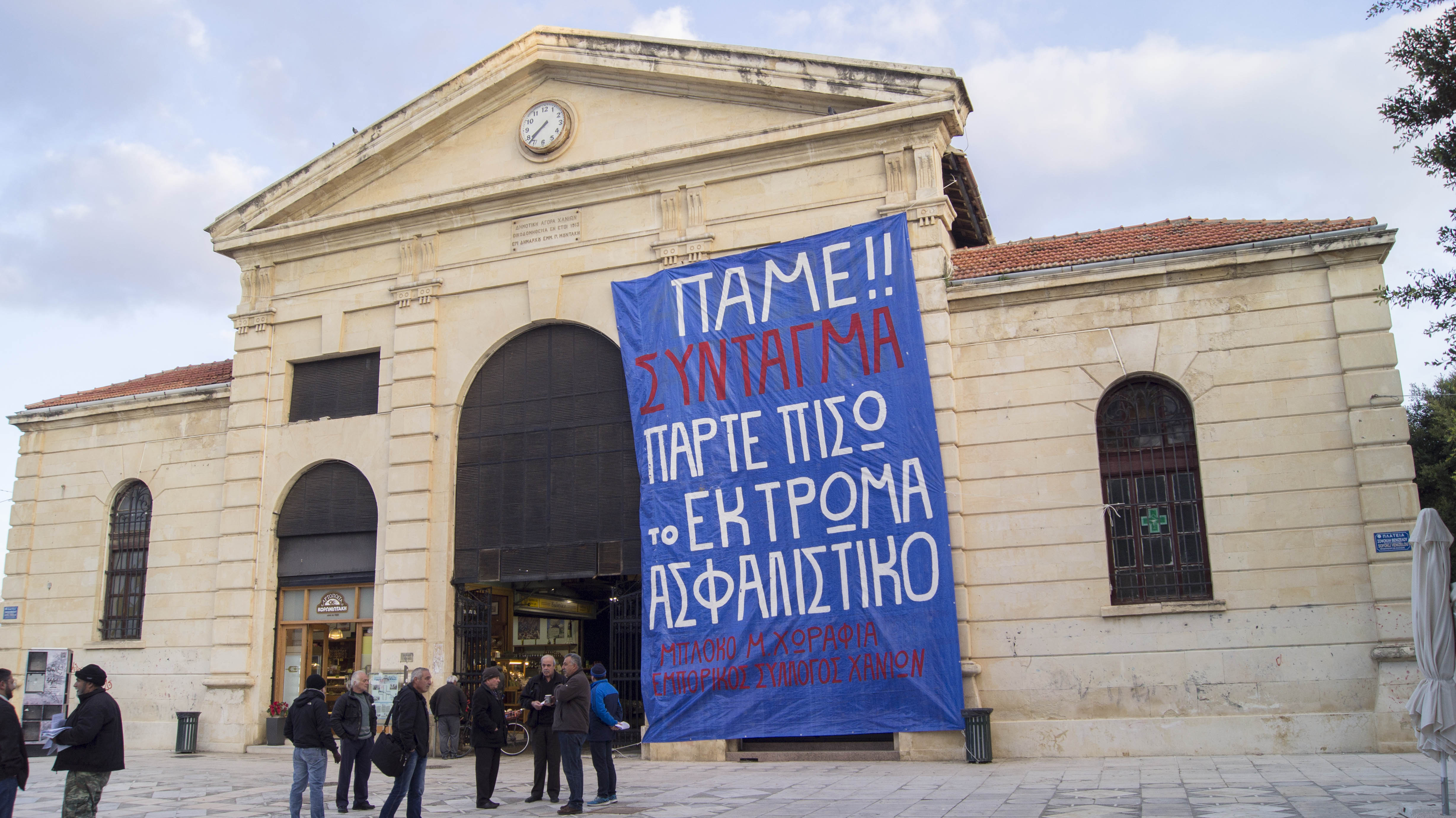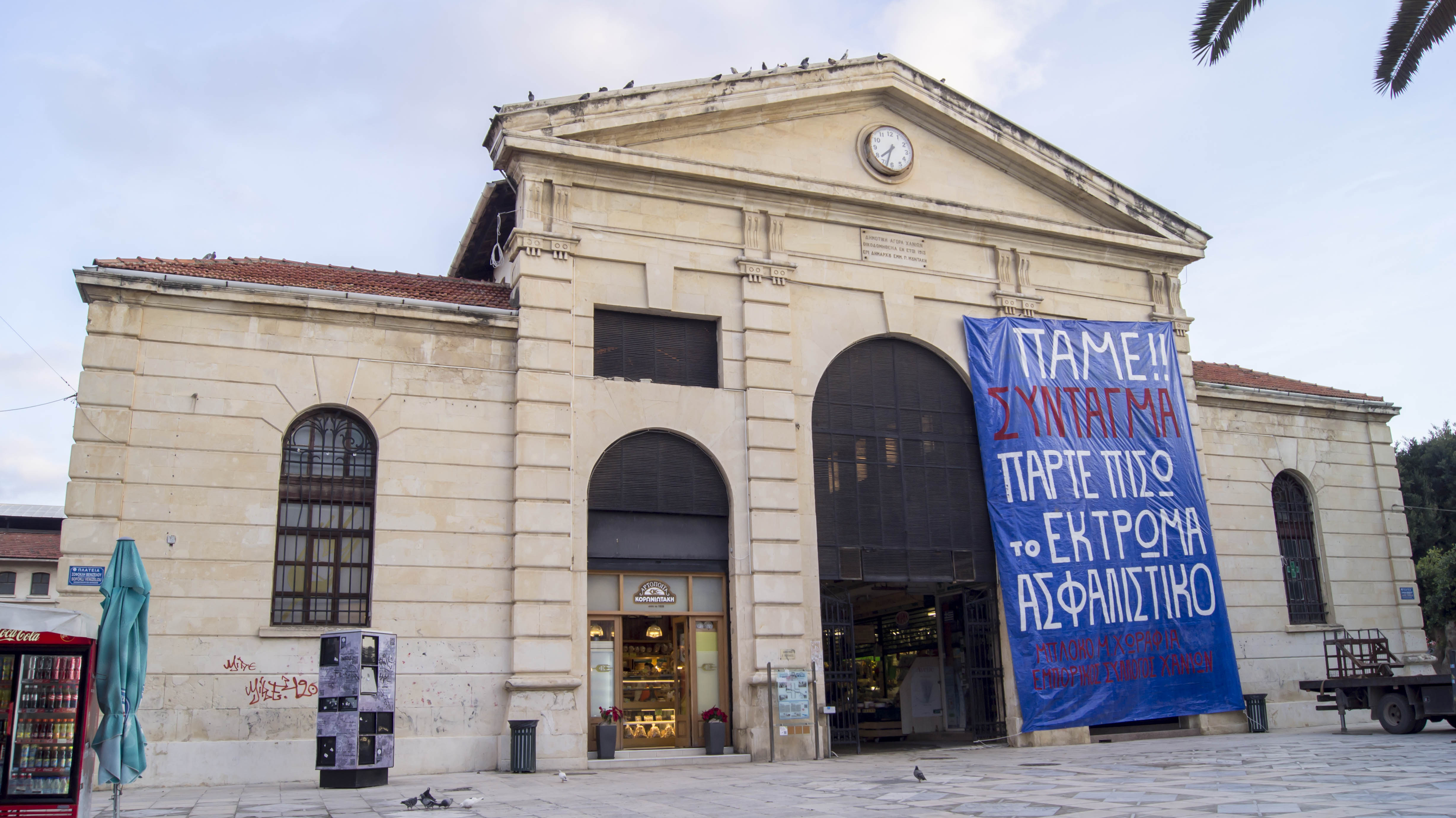 Δείτε φωτός του πανό που αναρτήθηκε στη Δημοτική Αγορά: