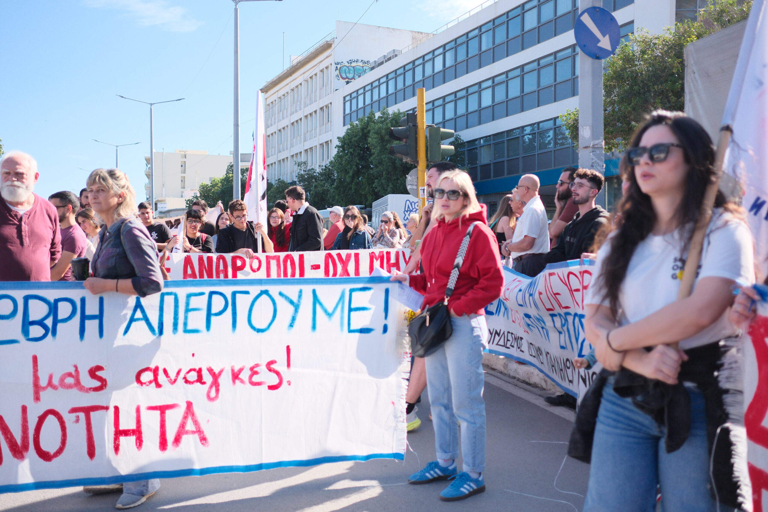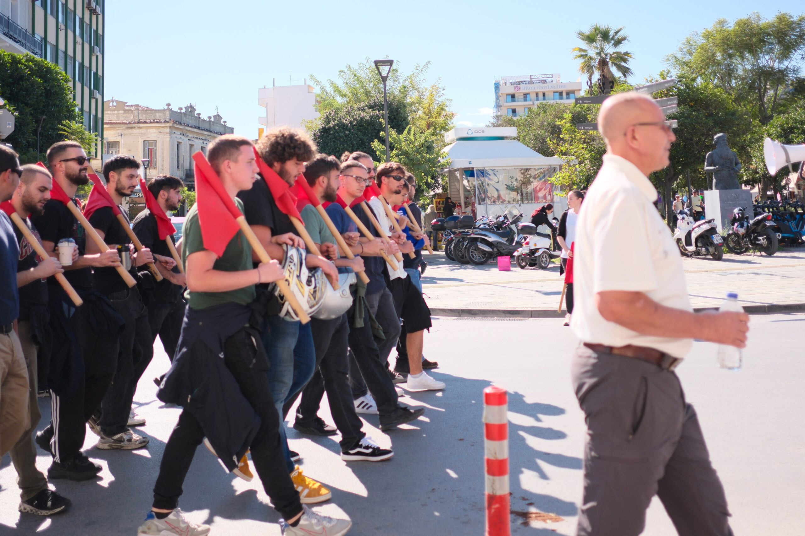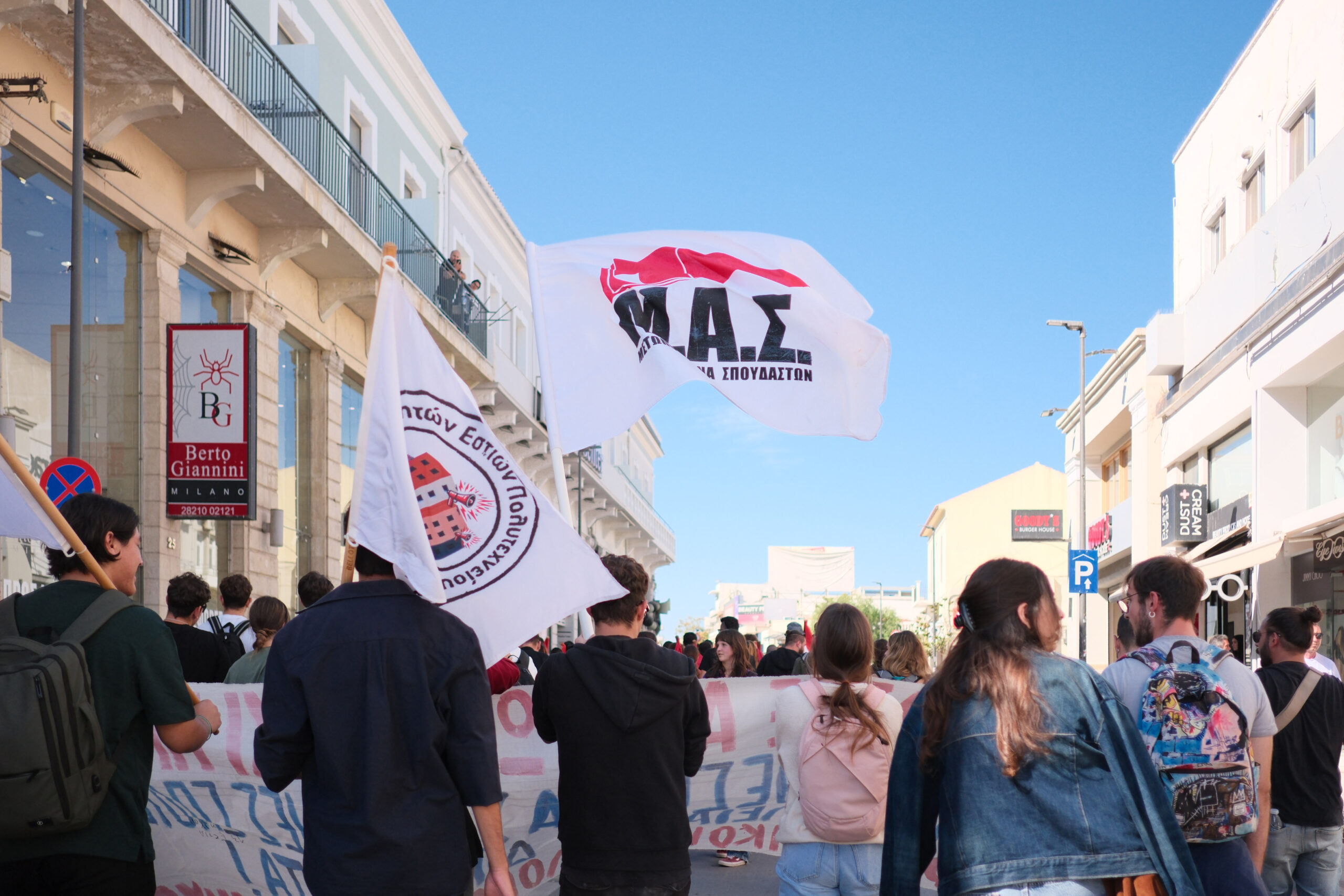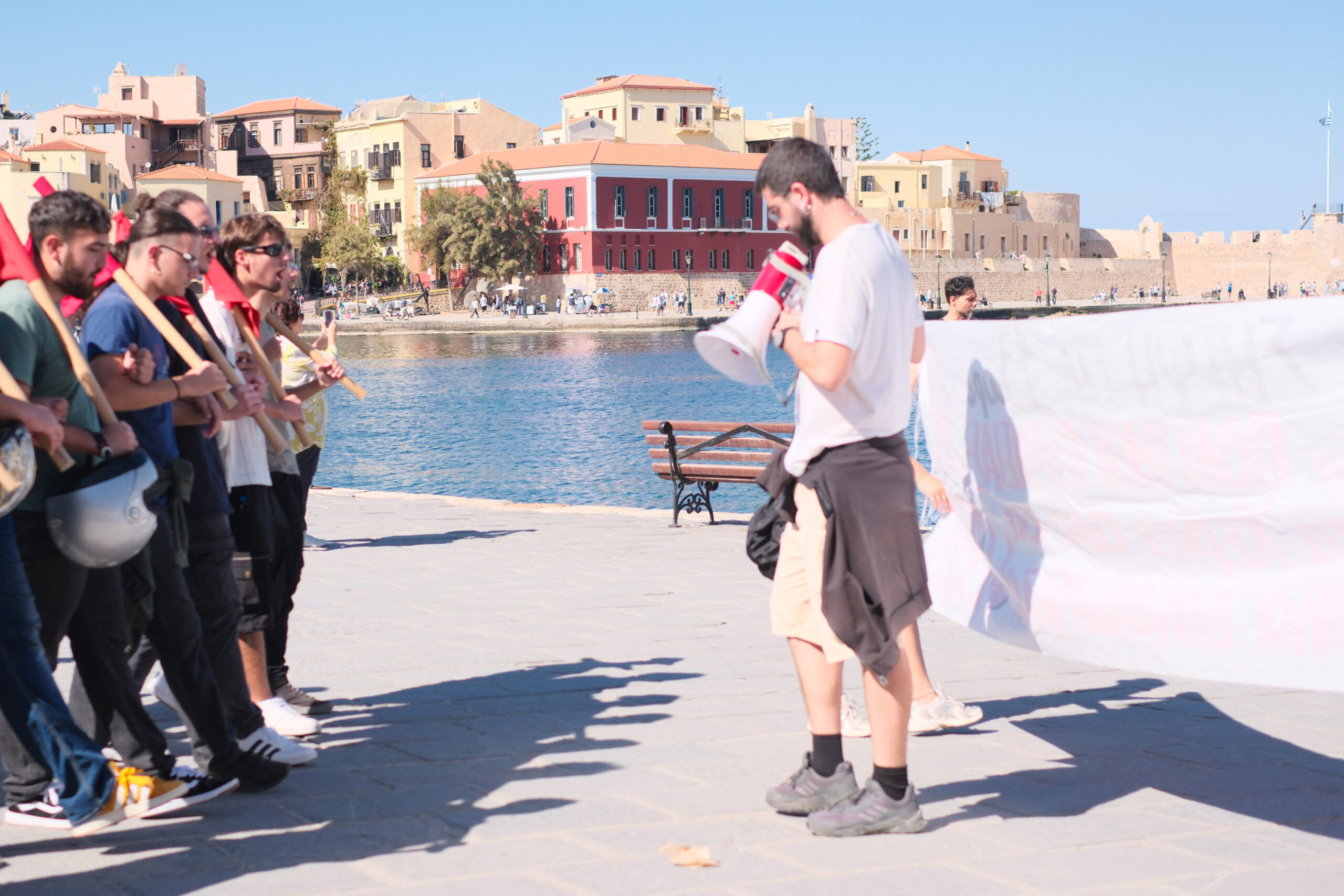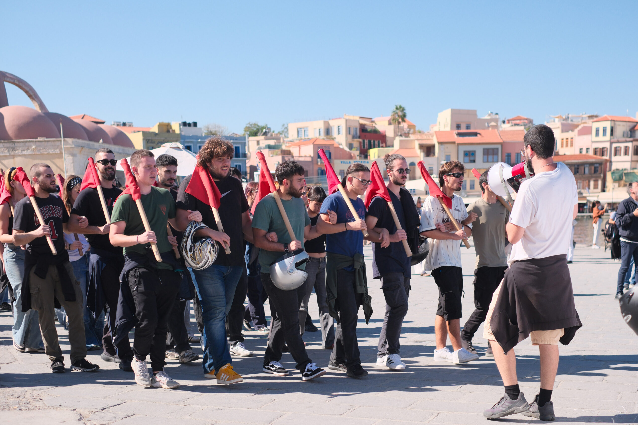 Με δυναμική παρουσία και συνθήματα όπως «Δεν θέλουμε να ζούμε για να δουλεύουμε», οι φοιτητές του Πολυτεχνείου Κρήτης έδωσαν το παρών στην απεργία, καταγγέλλοντας ότι η πολιτική της κυβέρνησης οδηγεί τη νέα γενιά σε ένα μέλλον επισφάλειας.