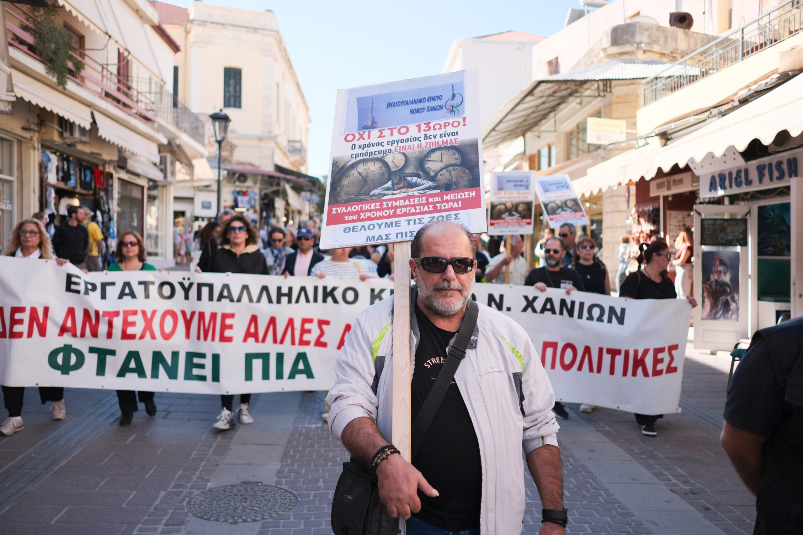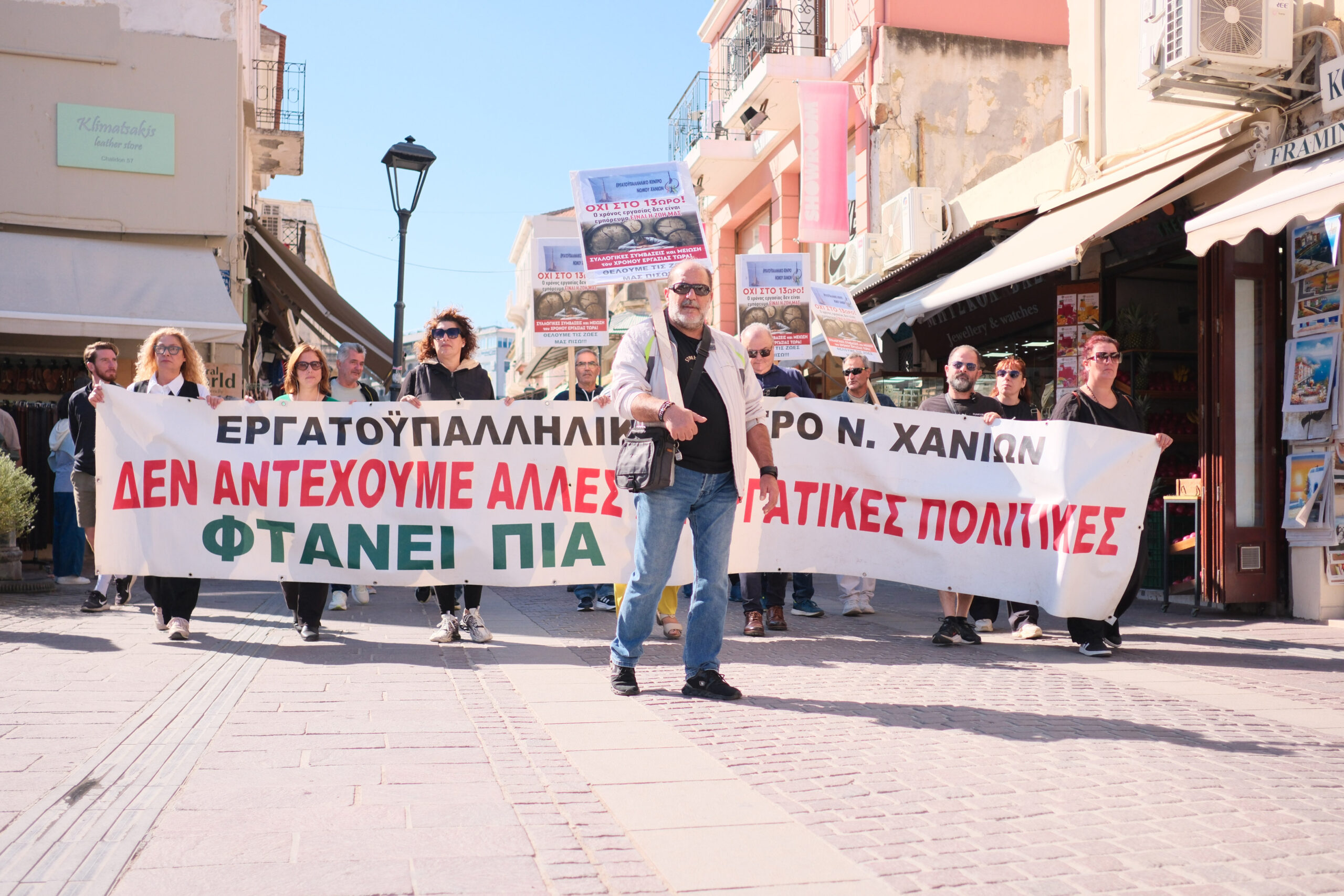 «Δεν είμαστε μηχανές»: Απεργιακό ξέσπασμα στα Χανιά ενάντια στο 13ωρο | Φωτορεπορτάζ