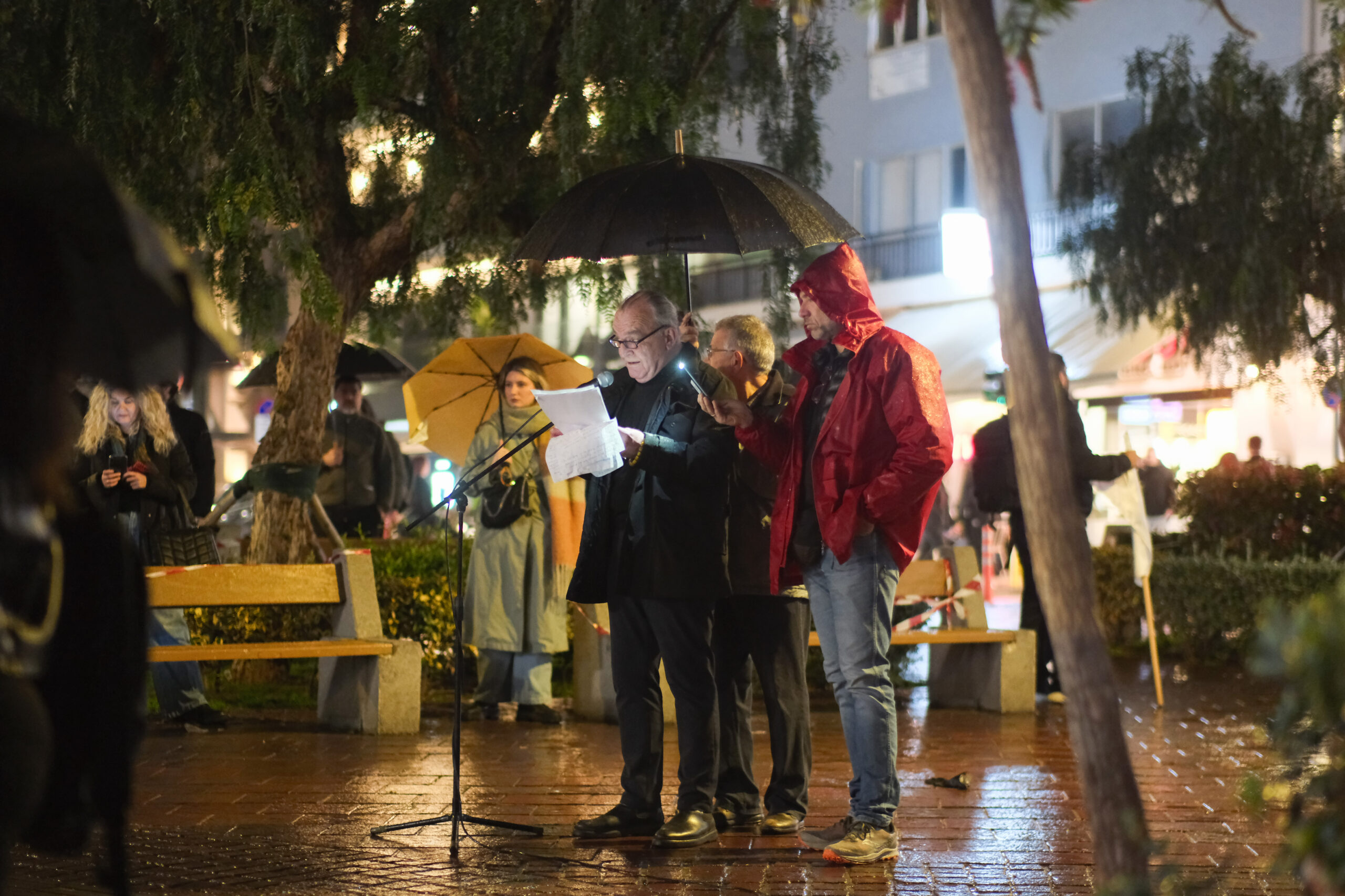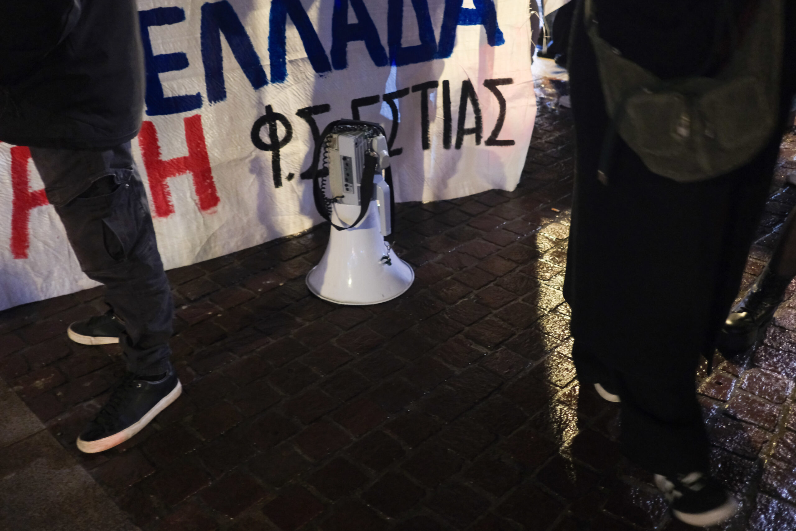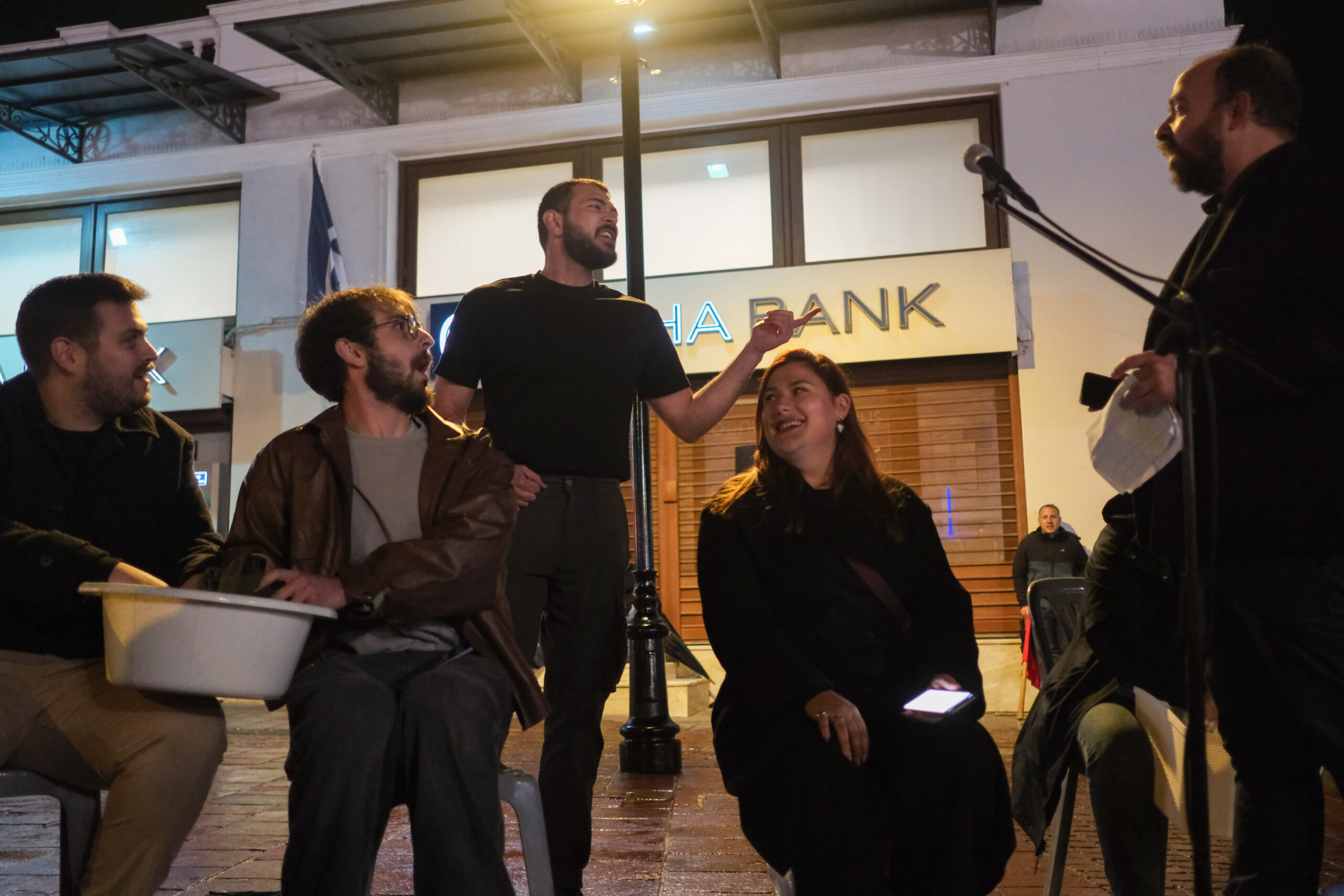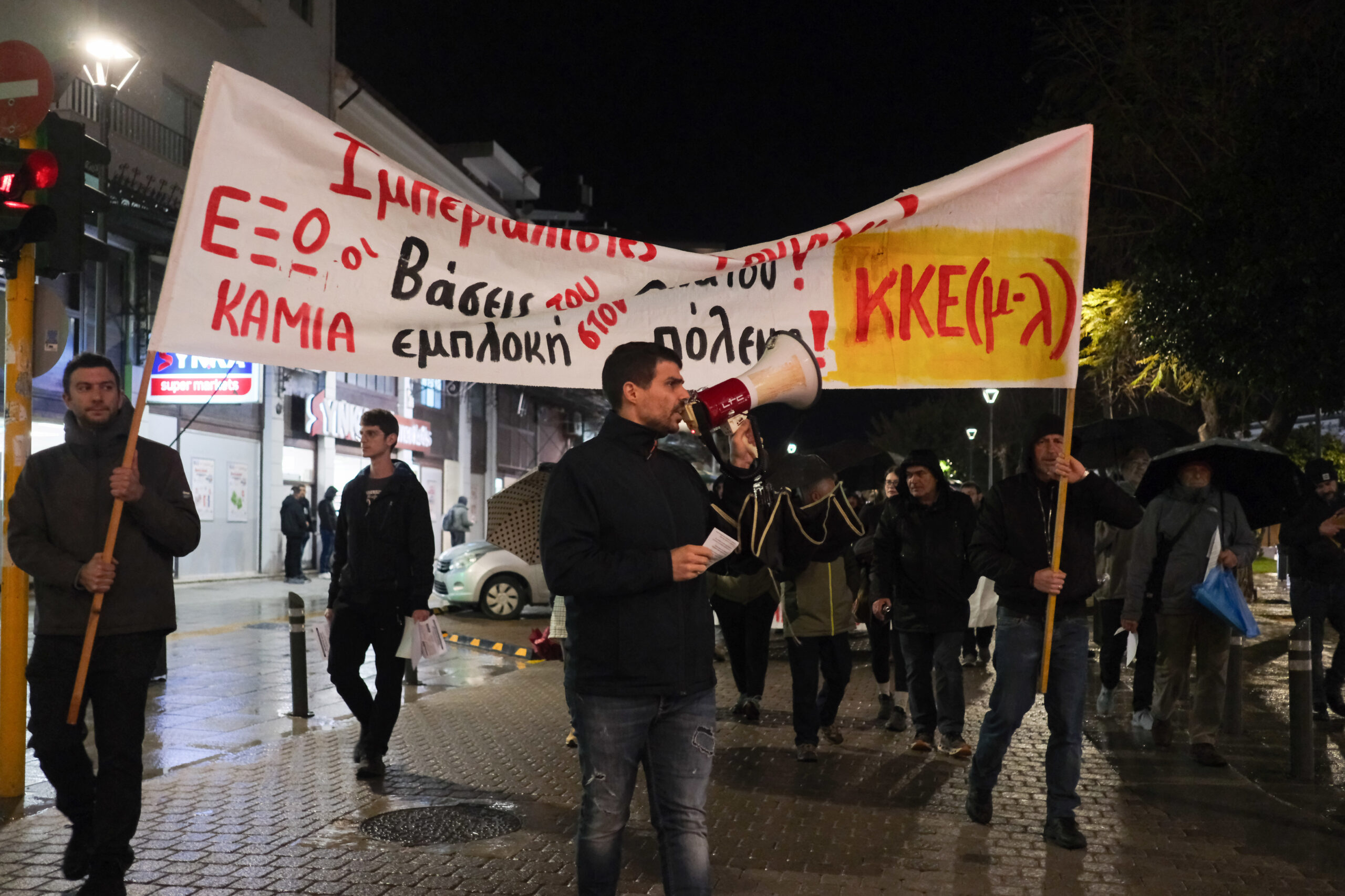 Τα συνθήματα στράφηκαν κατά του πολέμου και των βάσεων, όμως εκείνο που έκλεψε την παράσταση ήταν η σαφής αναφορά στα υδραυλικά προβλήματα του πλοίου: