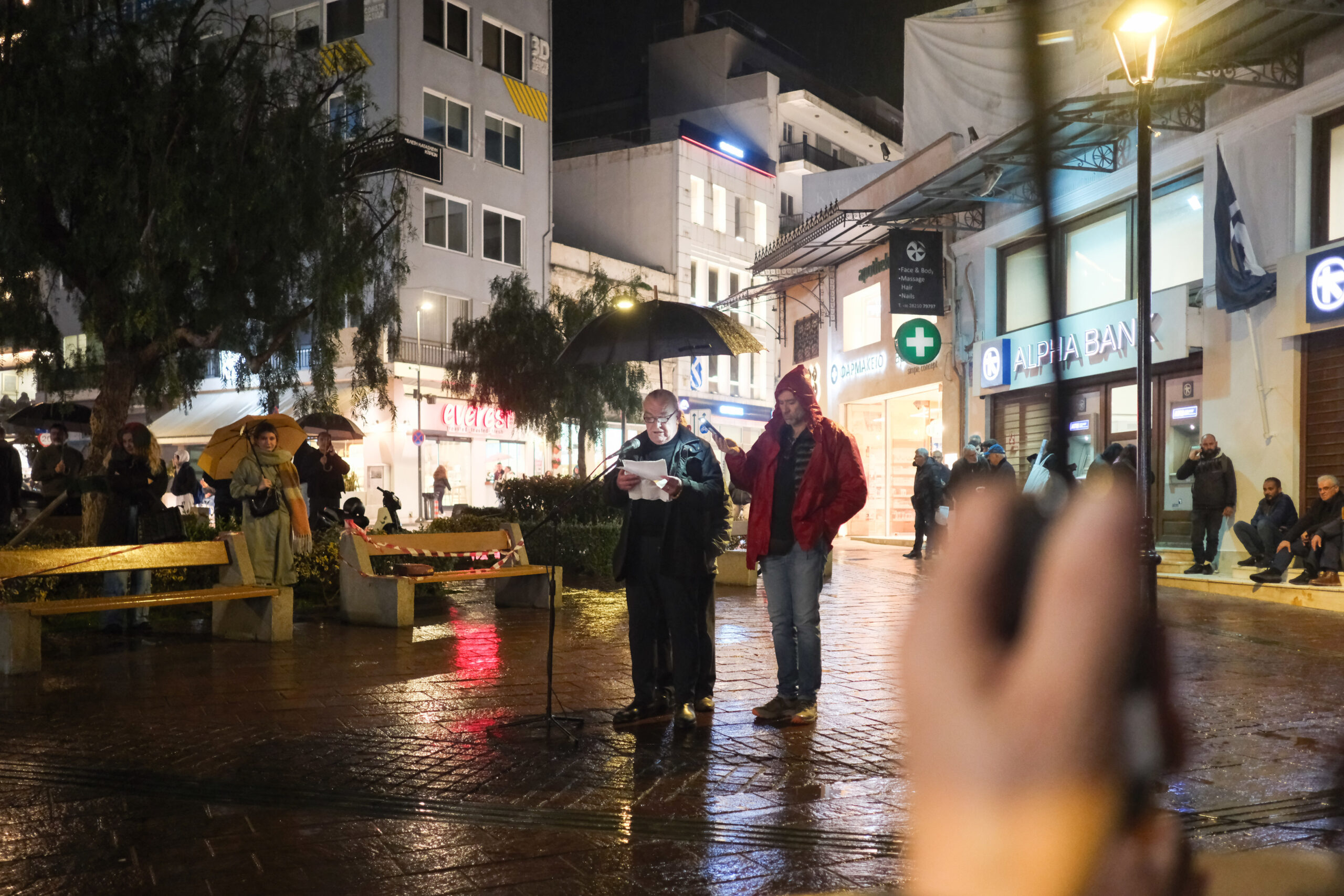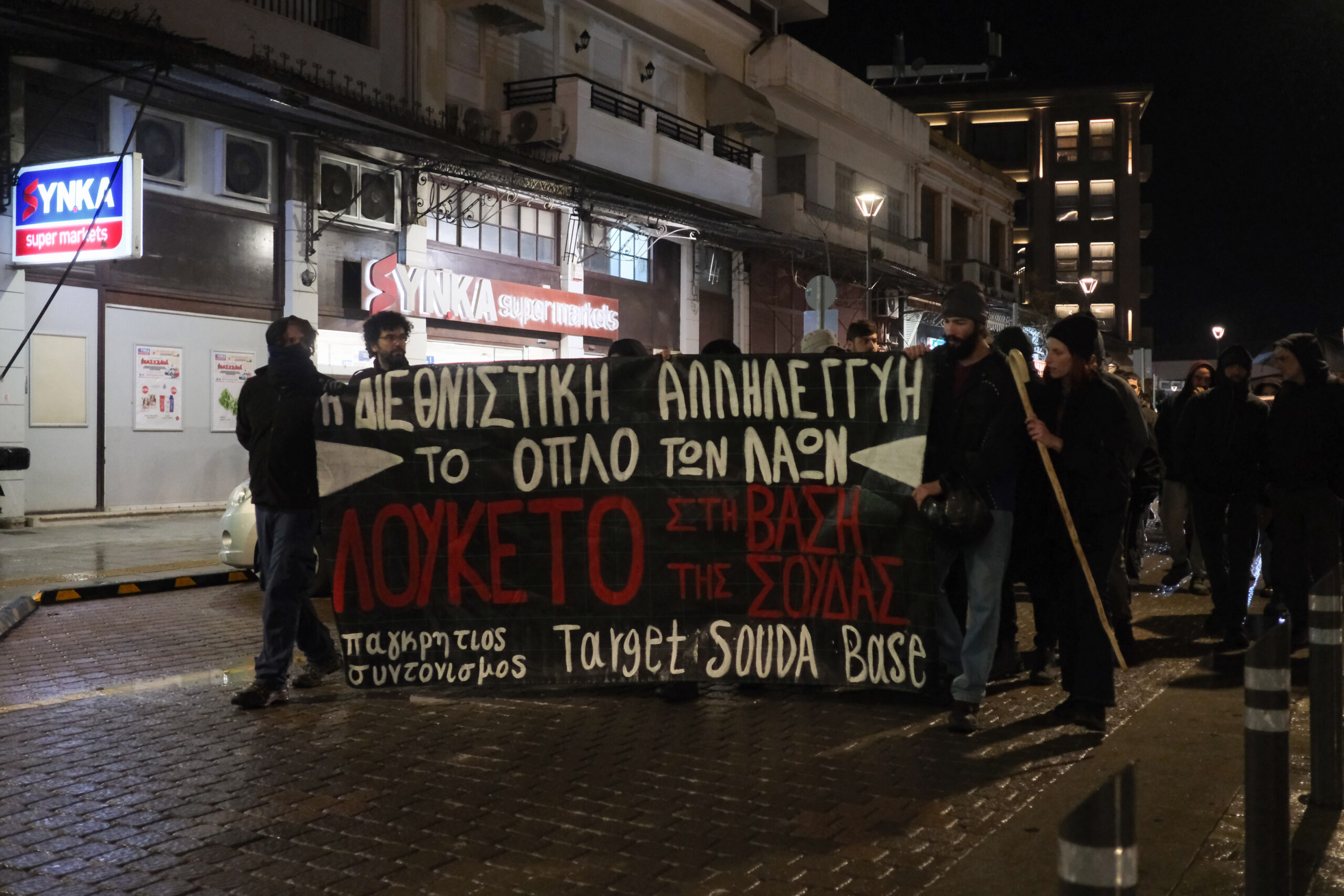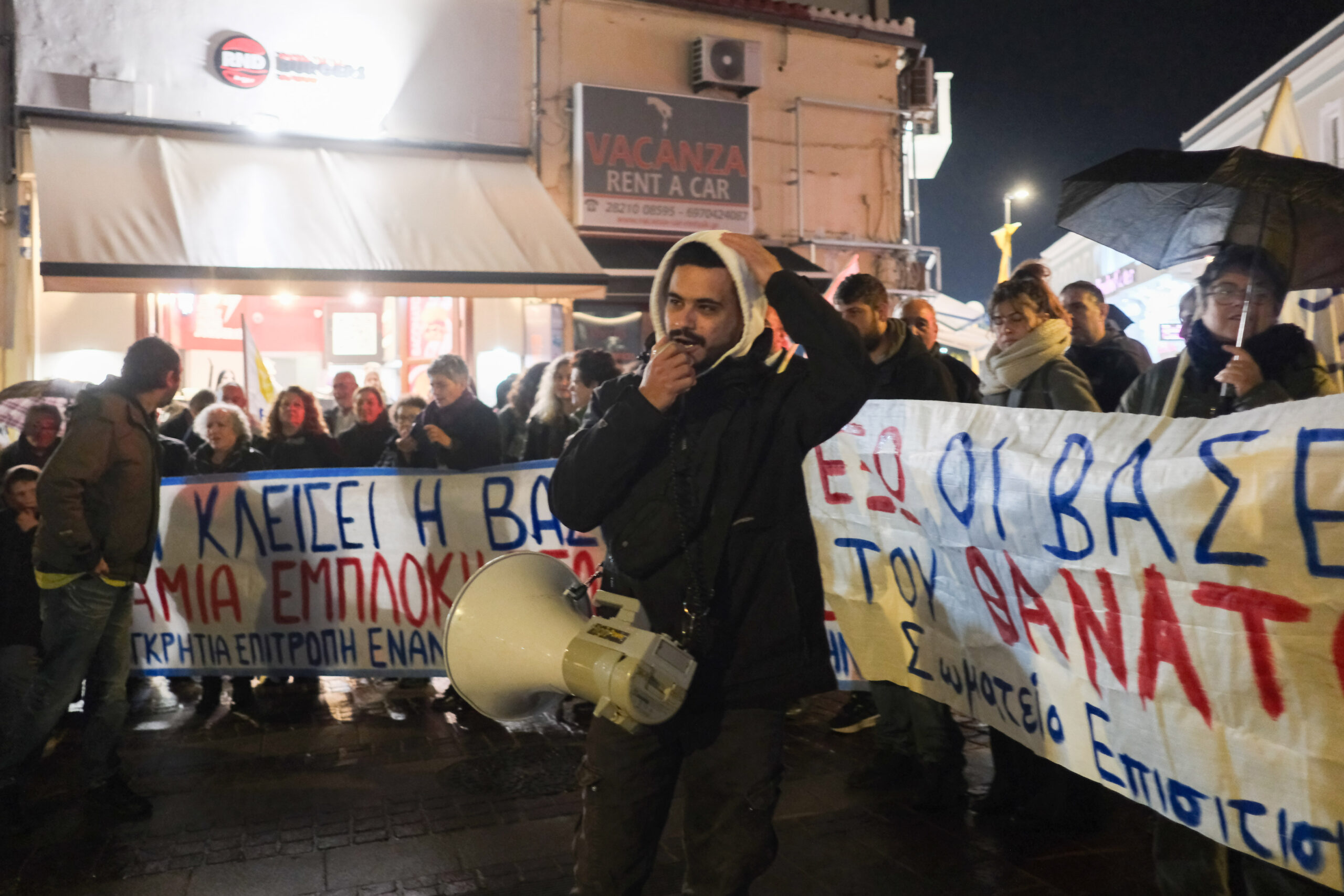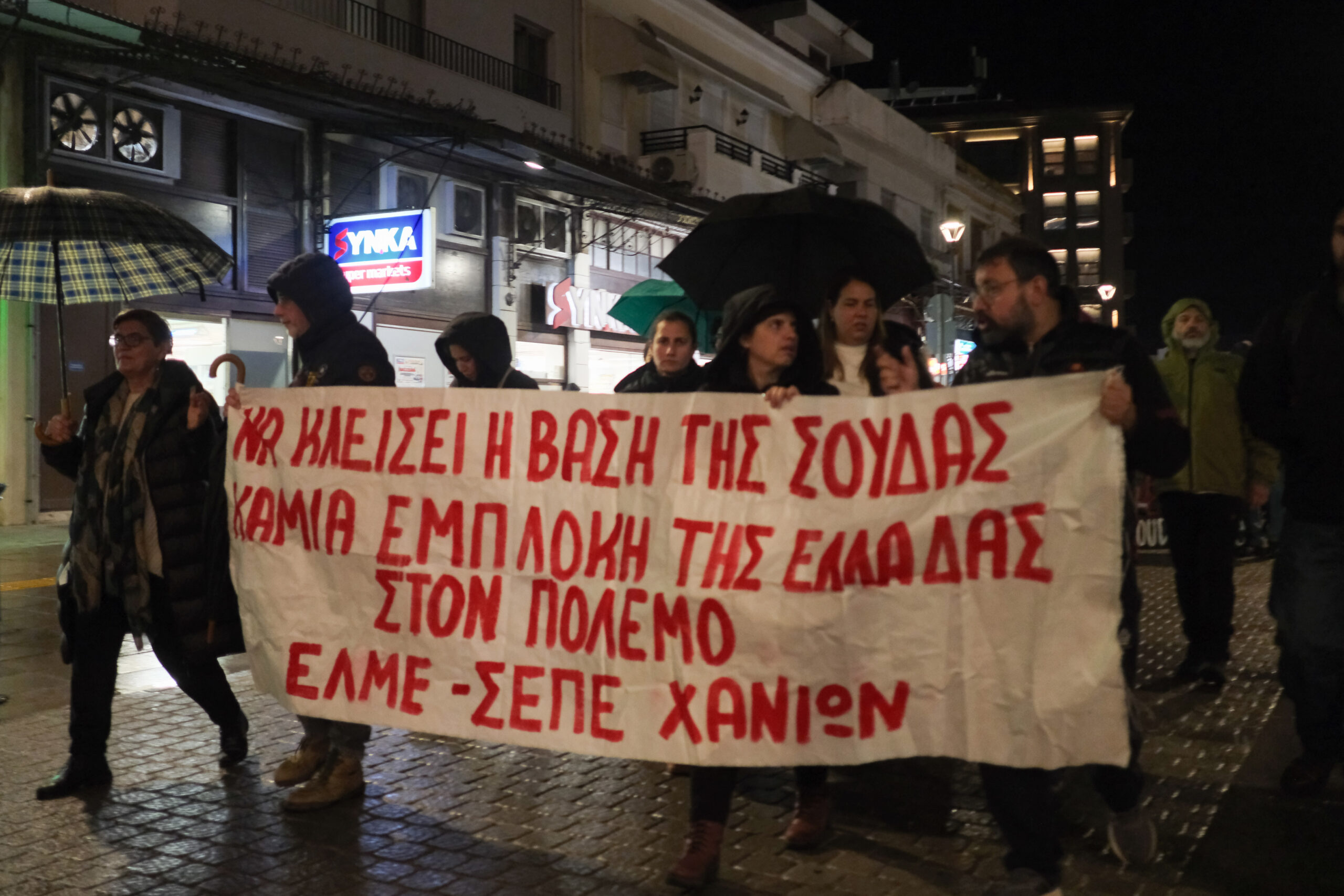 Αργότερα, και αφού έδωσε σύντομη ομιλία ο πρόεδρος της Παγκρήτιας Επιτροπής κατά των Βάσεων κ. Μανώλης Παπαδομανωλάκης, πραγματοποιήθηκε πορεία στους δρόμους.