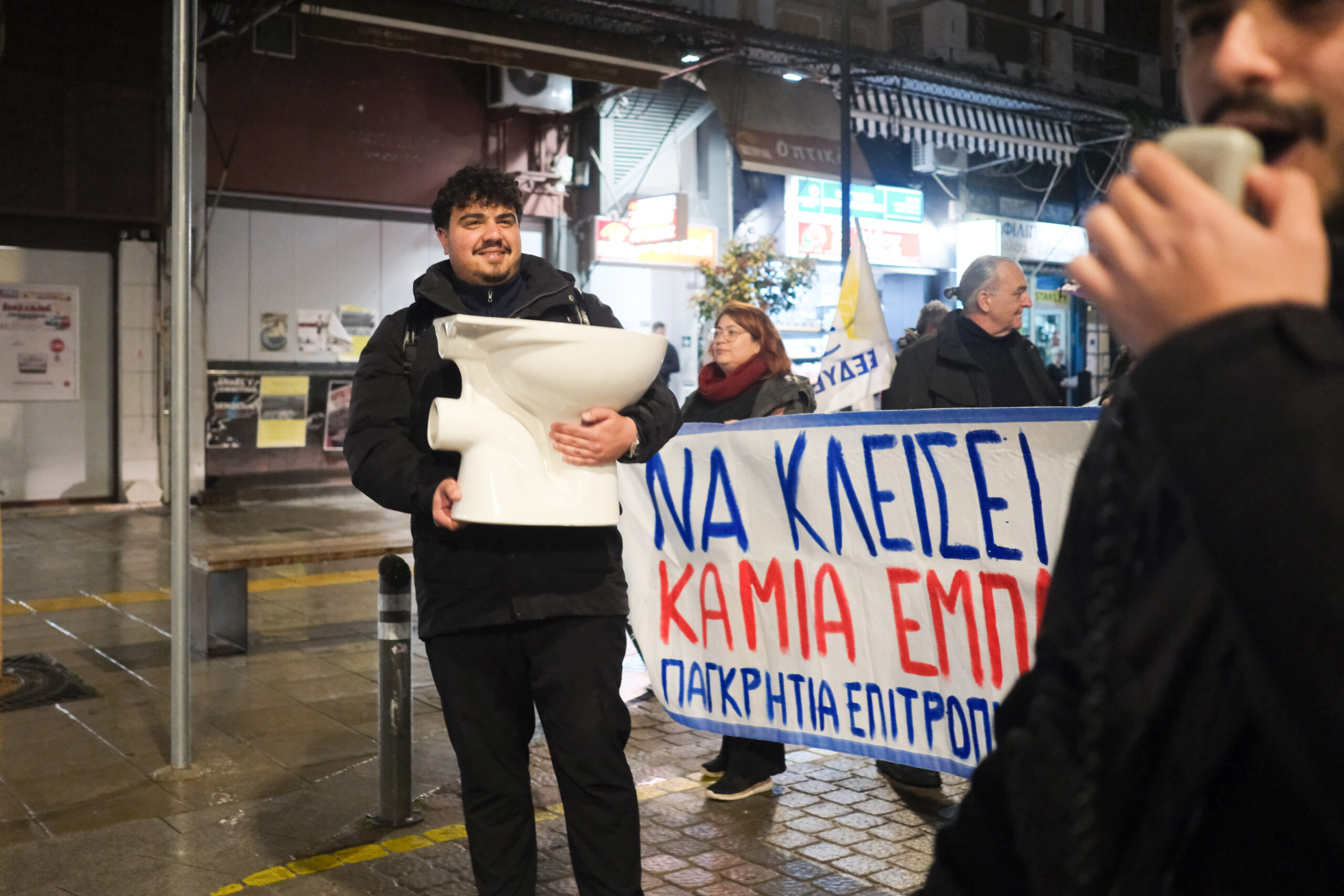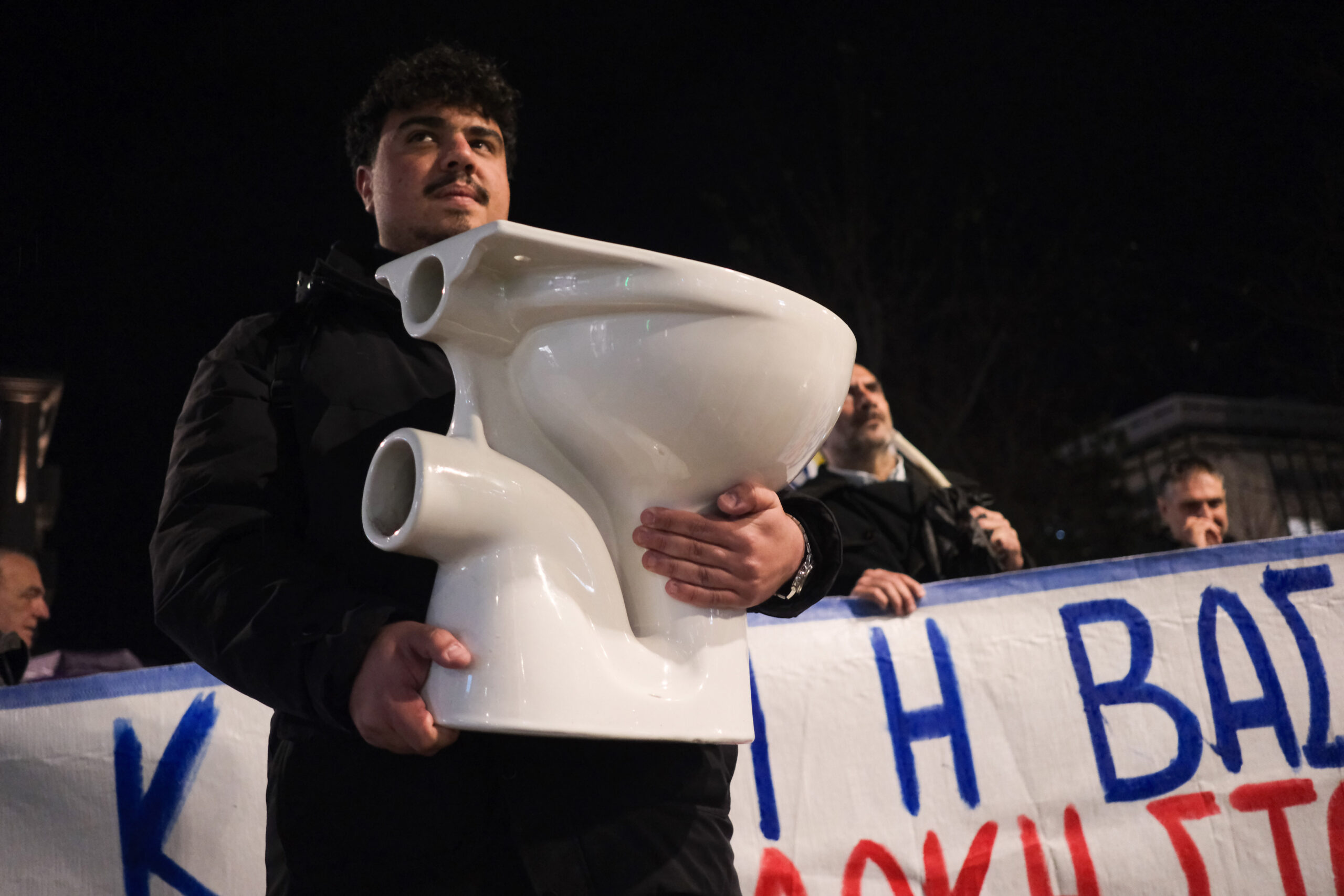 Το πλέον αξιοσημείωτο στοιχείο της διαδήλωσης ήταν ένας διαδηλωτής στην κεφαλή της πορείας που κρατούσε μια λεκάνη τουαλέτας προκαλώντας γέλια τόσο σε διαδηλωτές όσο και σε περαστικούς που έμεναν έκπληκτοι με το θέαμα.