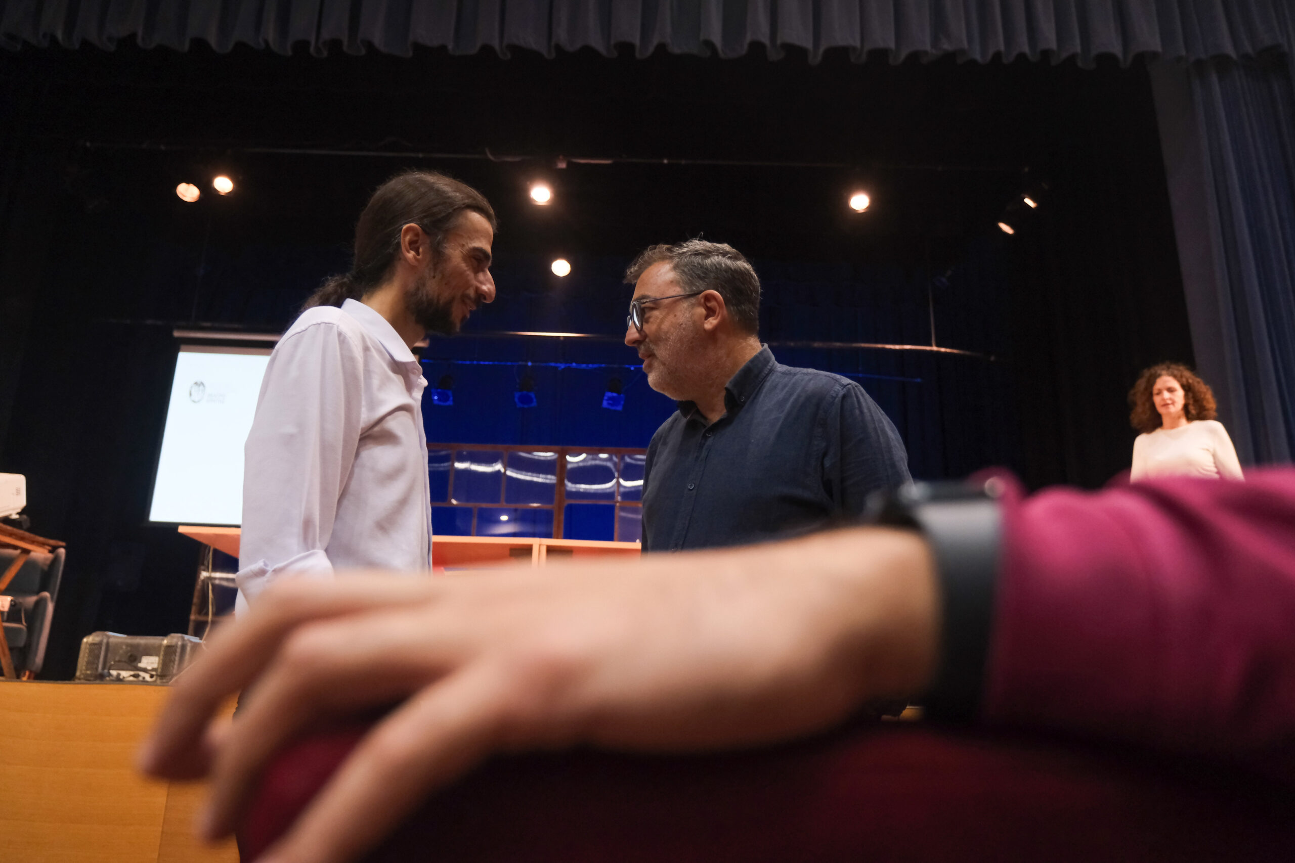 Αναφερόμενος στις υποδομές, ο κ. Γιαννακάκης παραδέχτηκε ότι ο σχεδιασμός της σκηνής του θεάτρου «Μίκης Θεοδωράκης» αποσκοπούσε στην εξυπηρέτηση τριών διαφορετικών λειτουργιών —συνεδριακής, συναυλιακής και θεατρικής— κάτι που οδήγησε αναπόφευκτα σε τεχνικές προσαρμογές.