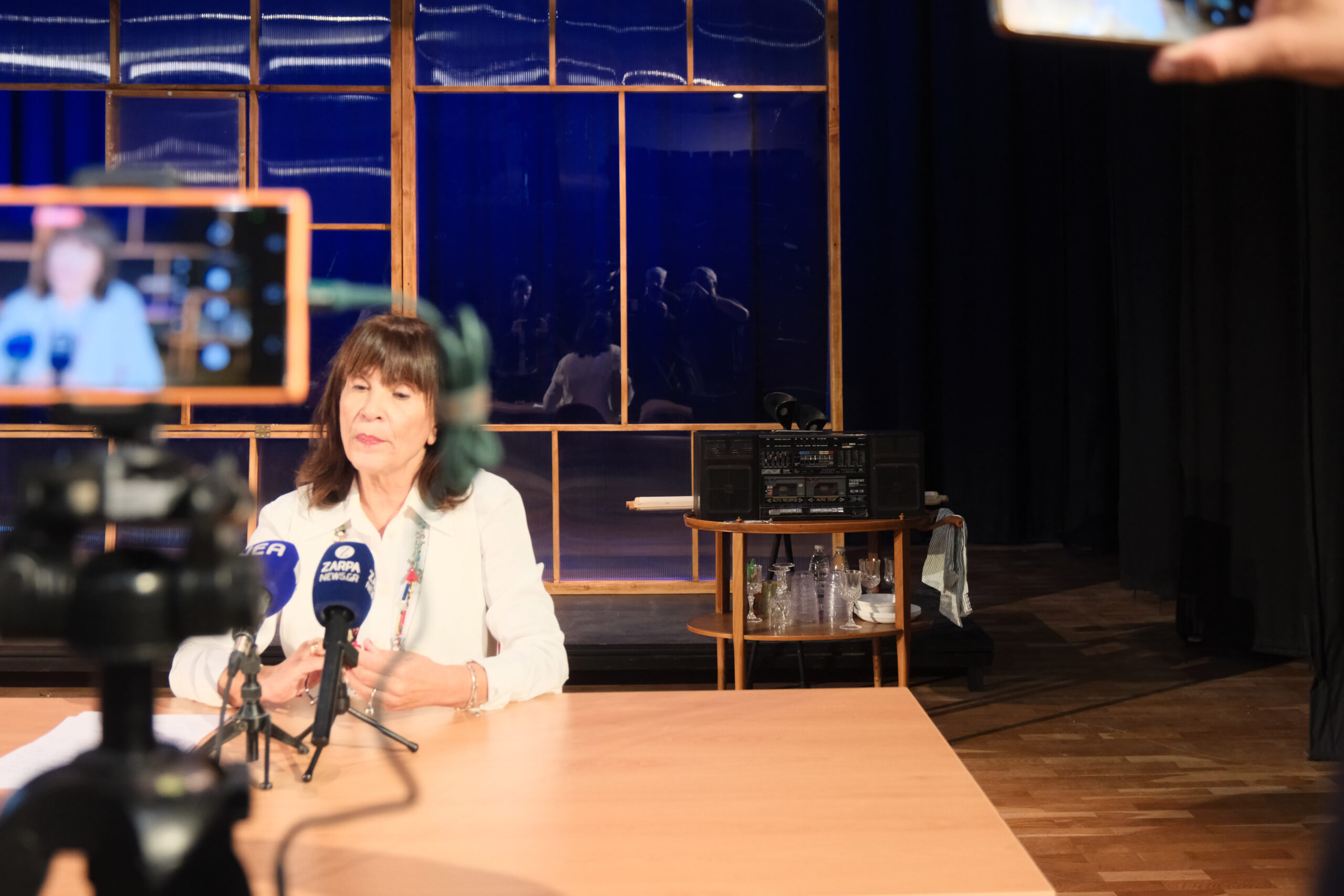 «Νιώθω ευγνωμοσύνη που μετά από τόσα χρόνια, βρίσκομαι σε μια παράσταση με τόσο έντονο κωμικό χαρακτήρα», ανέφερε. Εξομολογήθηκε πως από την πρώτη στιγμή της εμπλοκής της στο έργο υπήρχε μια βαθιά ανυπομονησία για την αποδοχή του από το κοινό: «Ακούω συχνά όλα αυτά τα χρόνια το αίτημα: “άντε, κάντε και μια κωμωδία” – μια ανάγκη του κόσμου για γέλιο. Τώρα αναρωτιέμαι πώς θα δεχτεί το κοινό αυτό το έργο. Αν θα το αγκαλιάσει».
