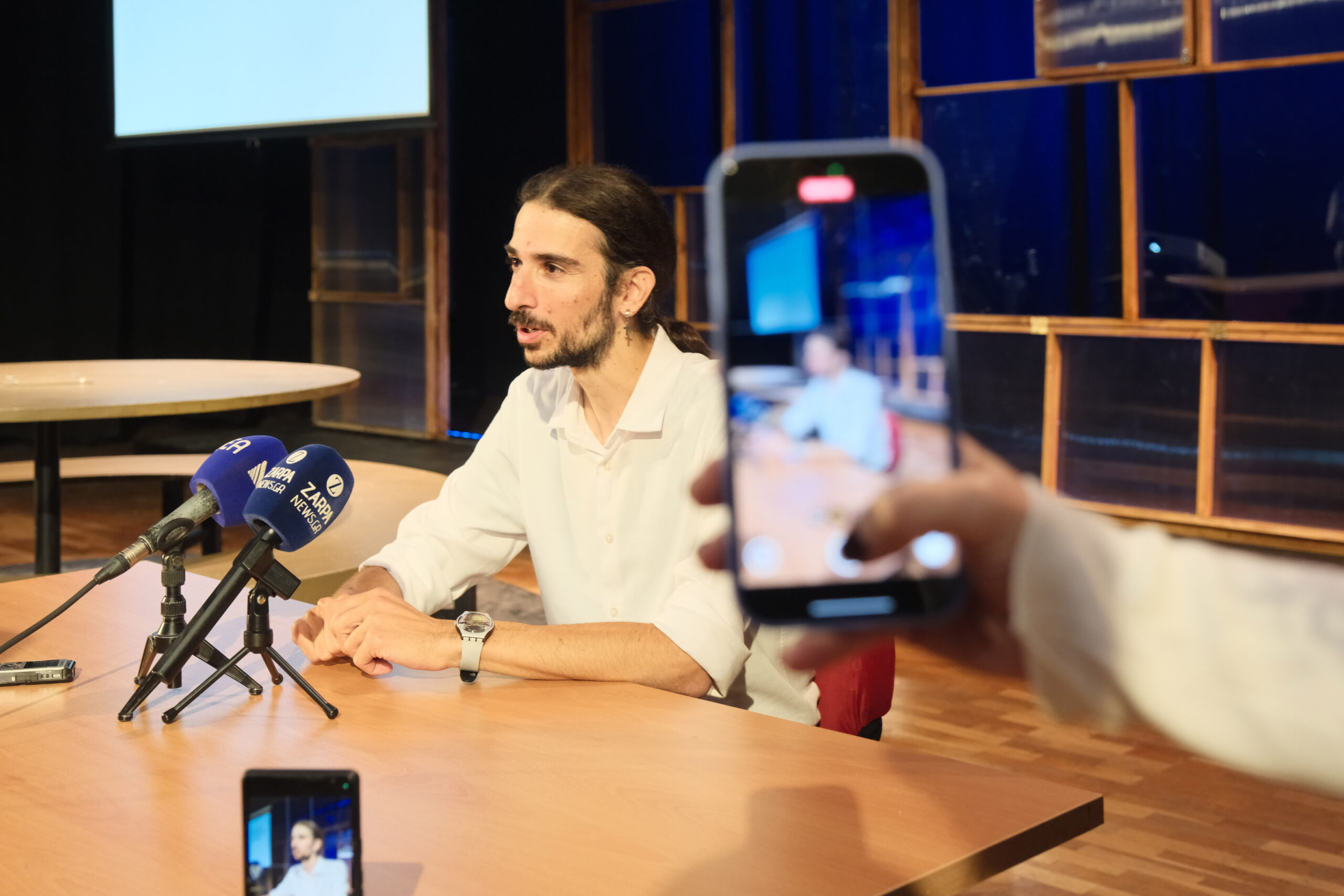 «Είμαι πάρα πολύ χαρούμενος που απ’ τα λόγια περνάμε στις πράξεις», ανέφερε στην εισαγωγή του, σημειώνοντας ότι το ΔΗΠΕΘΕΚ ξεκινά τη νέα του πορεία «με μια μεγάλη οικογένεια από καλλιτέχνες, τεχνικούς και ανθρώπους που έχουν ανάγκη την τέχνη και τον πολιτισμό».
