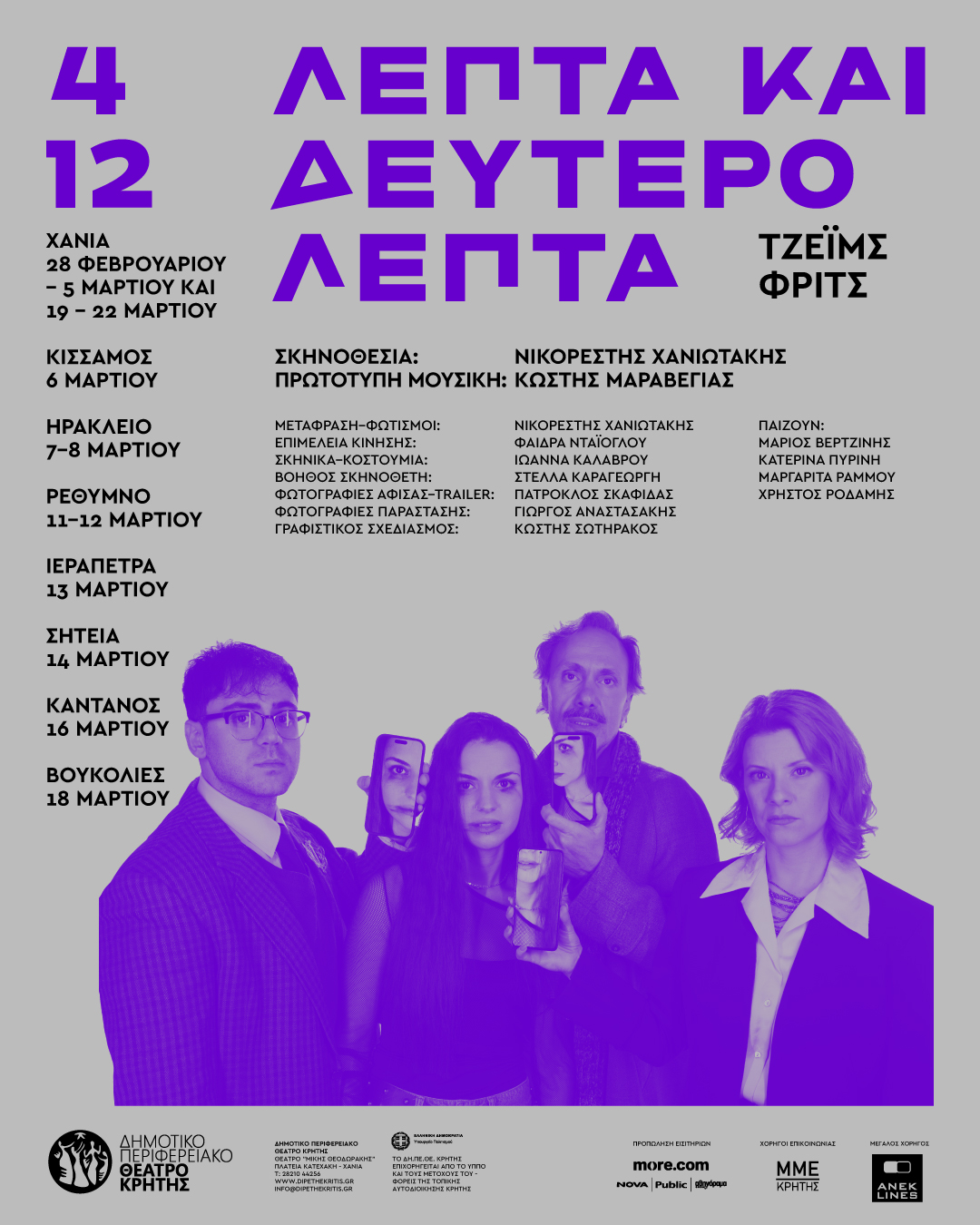 Ηράκλειο, αίθουσα «Μανόλης Καρέλλης»: Σάββατο 7 Μαρτίου στις 21:00 και Κυριακή 8 Μαρτίου στις 18:30