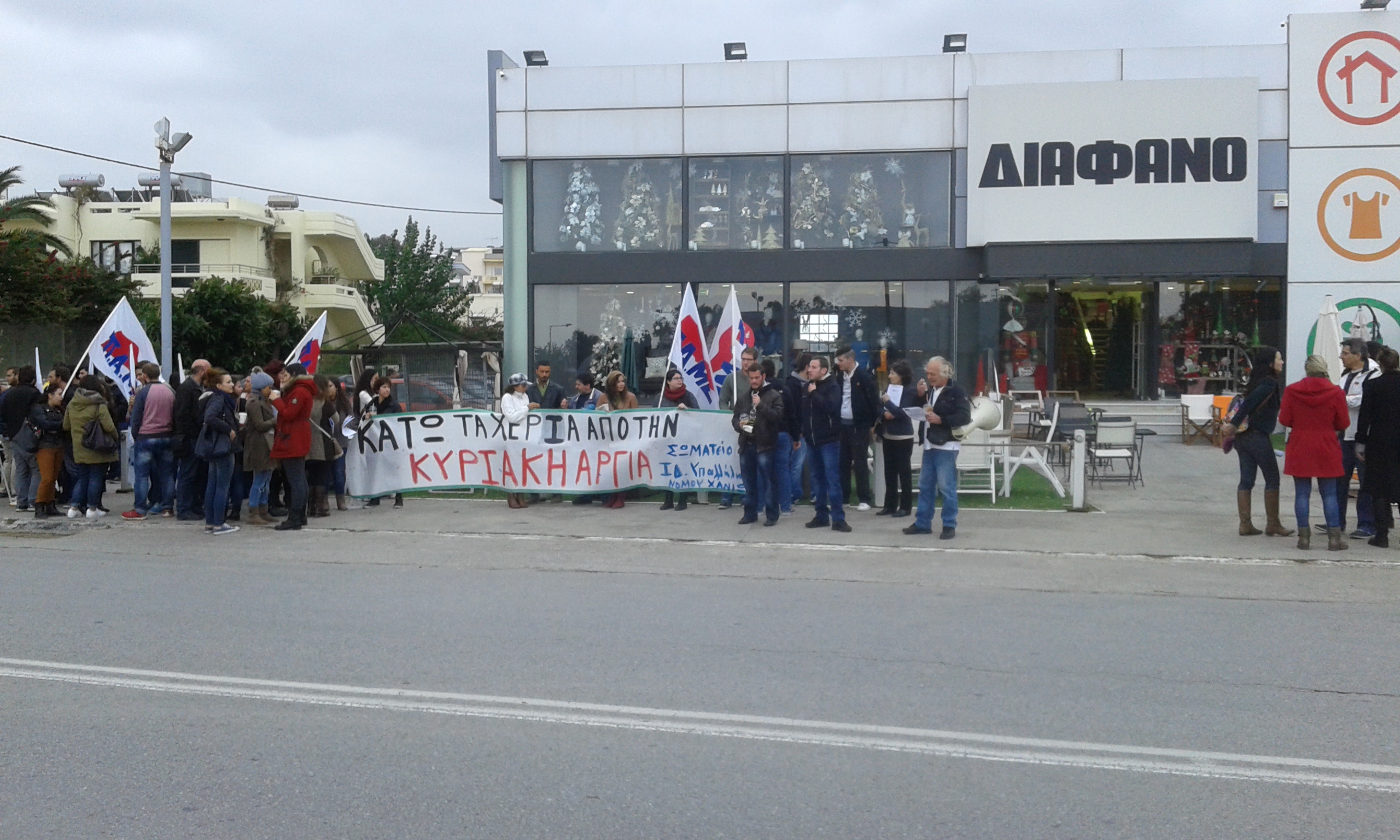 Όπως αναφέρουν σχετικά, μοίρασαν ανακοινώσεις υπέρ της κυριακάτικης αργίας ενώ ενημέρωσαν ότι στο κατάστημα ΔΙΑΦΑΝΟ απολύθηκε πρόσφατα εργαζόμενη λόγω της συνδικαλιστικής της δράσης.