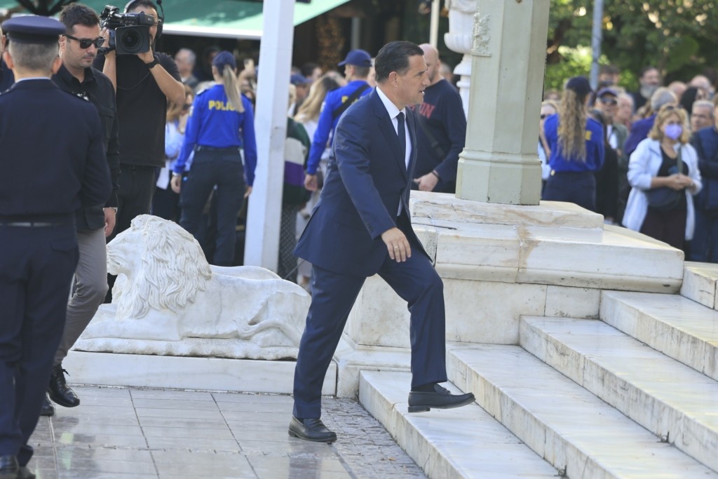 Στη Μητρόπολη βρίσκονταν από νωρίς πλήθος πολιτικών. Ανάμεσά τους οι Χάρης Δούκας, Νίκος Χαρδαλιάς, Κώστας Λαλιώτης, Μιλένα Αποστολάκη, Άδωνις Γεωργιάδης, Νίκος Δένδιας, Γιώργος Γεραπετριτης, Λίνα Μενδώνη, Νίκη Κεραμέως.
