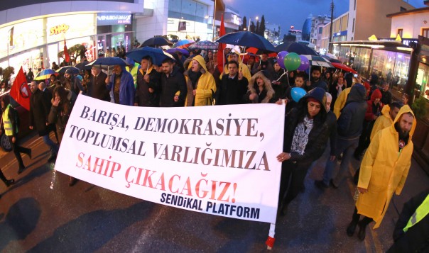 Υπό βροχή και γύρω στις 1830 ολοκληρώθηκε η πορεία «ειρήνης και δημοκρατίας» το Σάββατο 27 Ιανουαρίου με τη συμμετοχή χιλιάδων Τουρκοκυπρίων, την οποία διοργάνωσε η τ/κ συνδικαλιστική πλατφόρμα.
