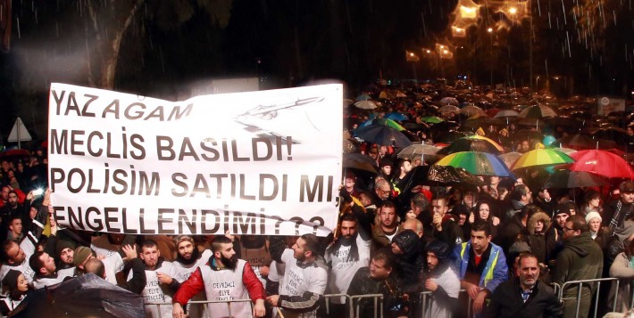 Ο διευθυντής της «Αφρίκα» Σενέρ Λεβέντ μαζί με μέλη του προσωπικού του και ομάδα υποστηρικτών του βρίσκονταν έξω το κτήριο όπου στεγάζονται τα γραφεία της εφημερίδας.
