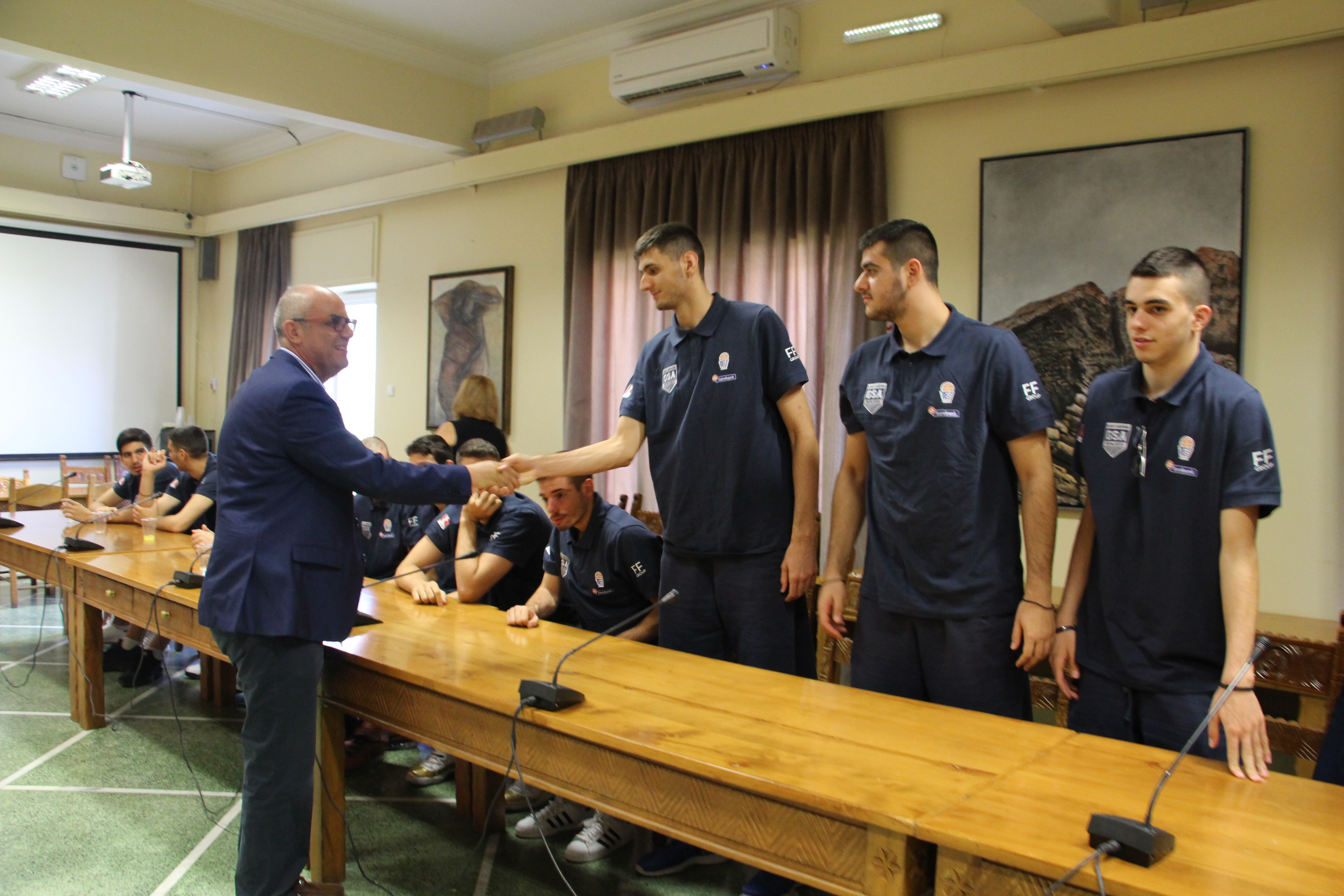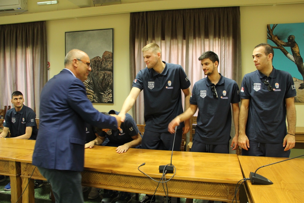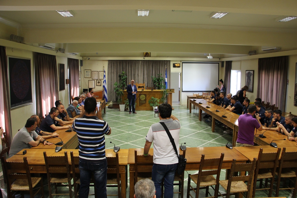 Τους διεθνείς μας υποδέχτηκε ο Δήμαρχος Χανίων, αντιδήμαρχοι, ο γ.γ του Δήμου και μέλη του Δημοτικού Συμβουλίου που θέλησαν να συγχαρούν του παίκτες για την μέχρι σήμερα προσπάθειά τους, αλλά και να τους ευχηθούν καλή επιτυχία εν’ όψει Ευρωπαϊκού Πρωταθλήματος.
