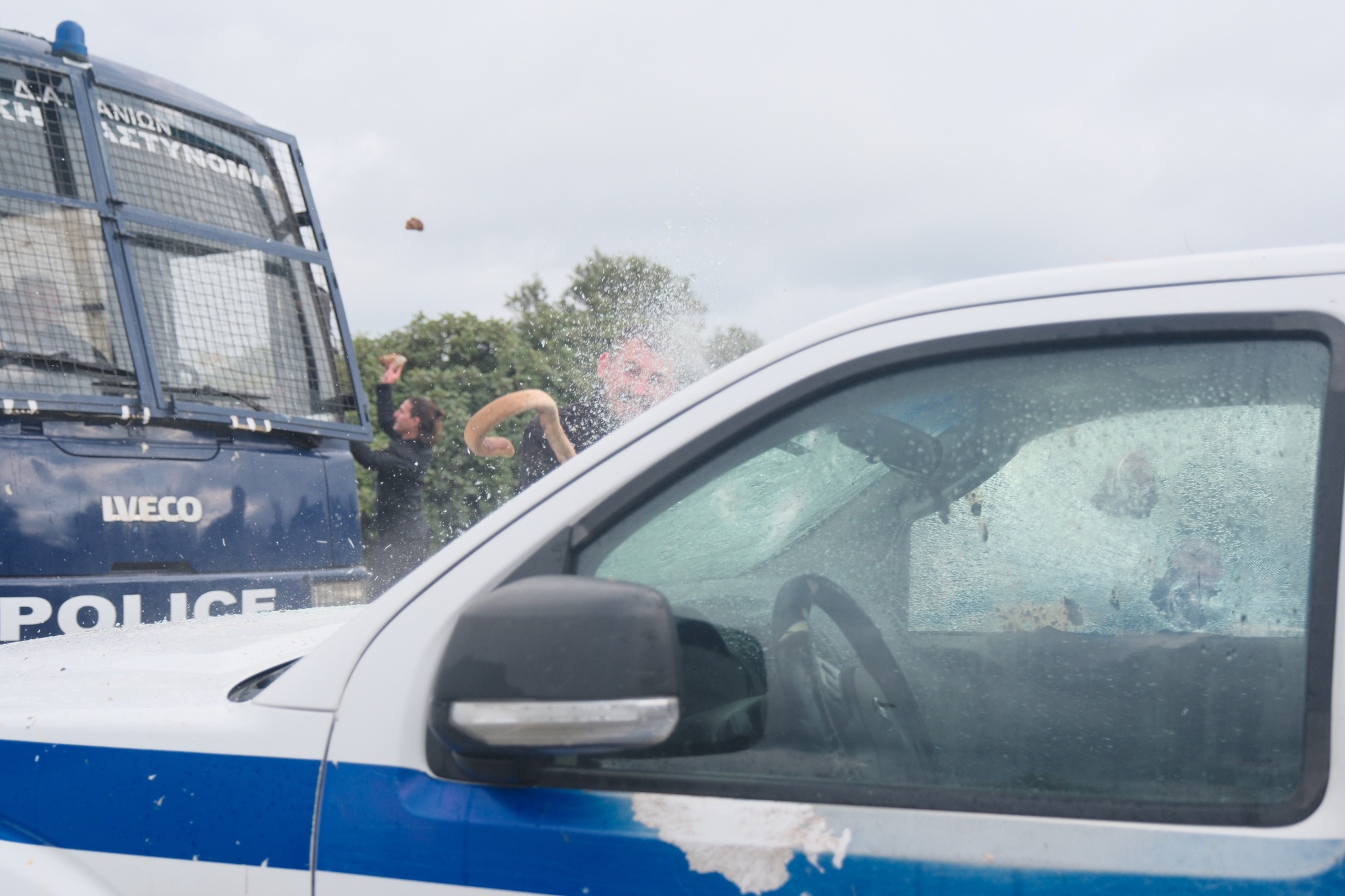 Σε πρώτη φάση, η αστυνομία επέτρεπε τη διέλευση των επιβατών προς το αεροδρόμιο, ωστόσο το κλίμα δυναμιτίστηκε γρήγορα. Η κατάσταση εκτραχύνθηκε όταν ομάδα αγροτών επιχείρησε να σπάσει τον αστυνομικό κλοιό και να περάσει εντός του χώρου.