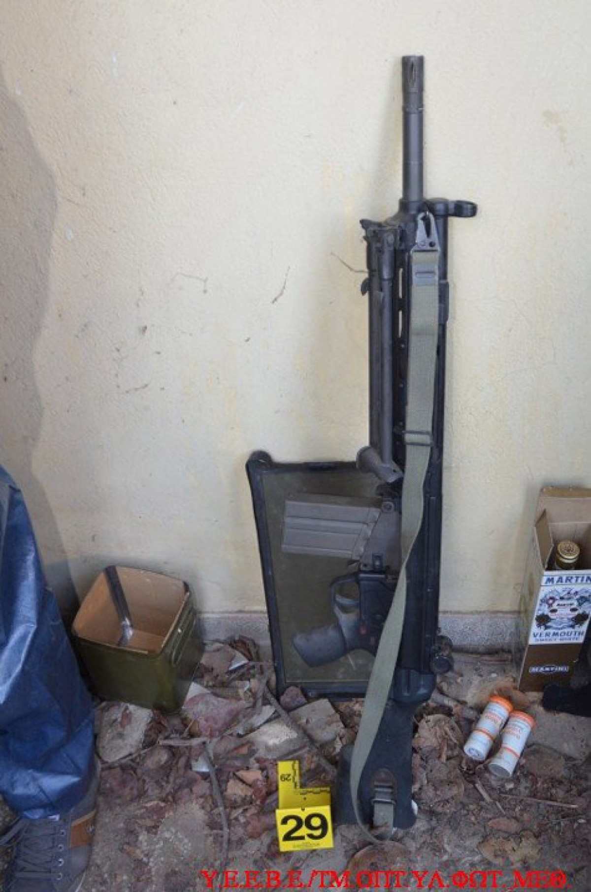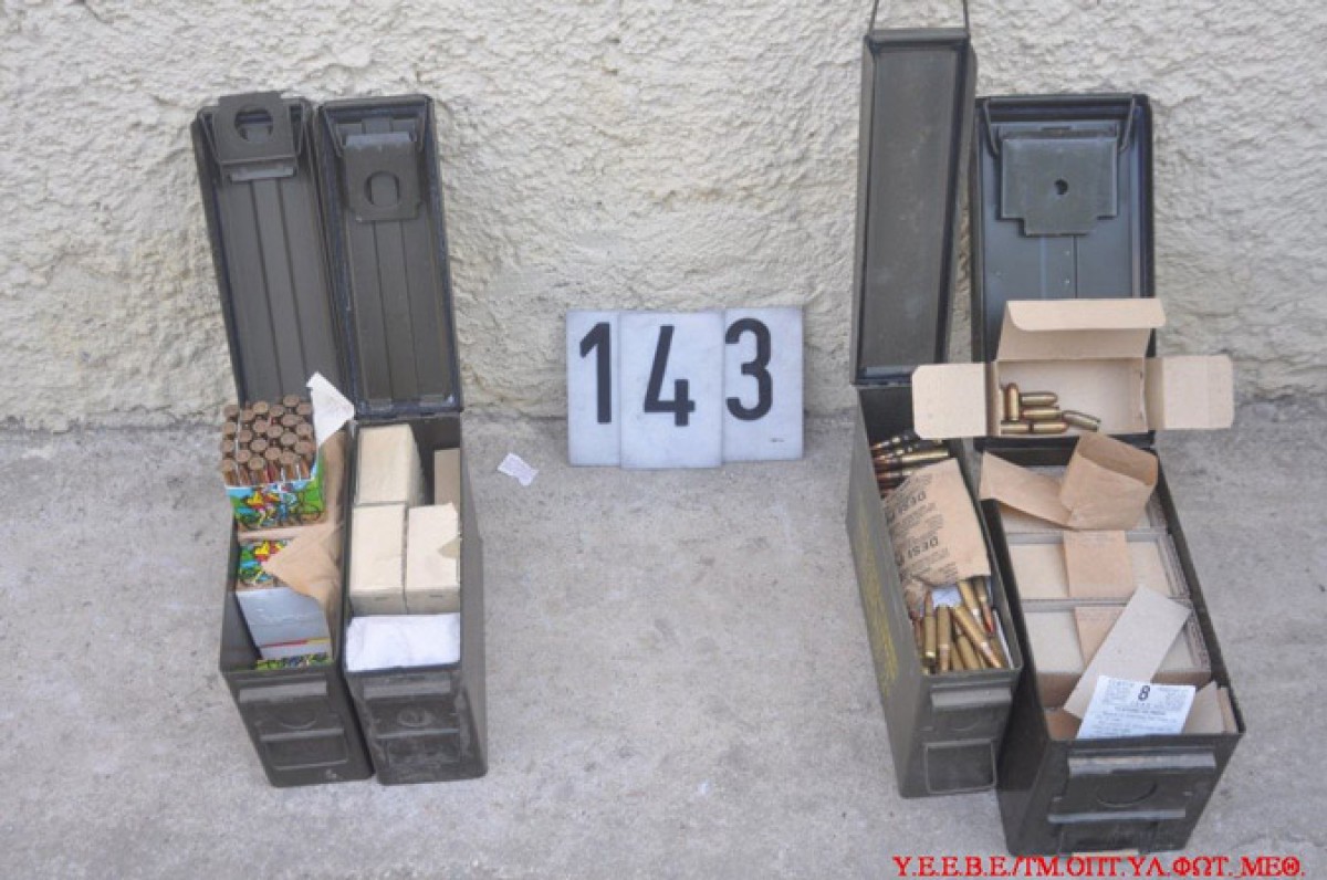 Το πολεμικό υλικό αποτελούνταν μεταξύ άλλων από 12 οπλοβομβίδες, πέντε πολεμικά τυφέκια, ένα υποπολυβόλο, δυο περίστροφα, 31 επιθετικές, 32 αμυντικές και 37 χειροβομβίδες άλλων τύπων, 62.434 φυσίγγια διαφόρων τύπων και διαμετρημάτων, διάφορες μεταλλικές συσκευασίες με εκρηκτική ύλη ΤΝΤ, 41 μεταλλικά κουτιά με πλήθος εξαρτημάτων και ανταλλακτικών στρατιωτικού υλικού, φωτοβολίδες και άλλα αντικείμενα. Όλα κατασχέθηκαν, εξετάστηκαν από πυροτεχνουργούς του Στρατού και του Τ.Ε.Ε.Μ. και παραδόθηκε για φύλαξη σε στρατιωτική μονάδα της περιοχής.