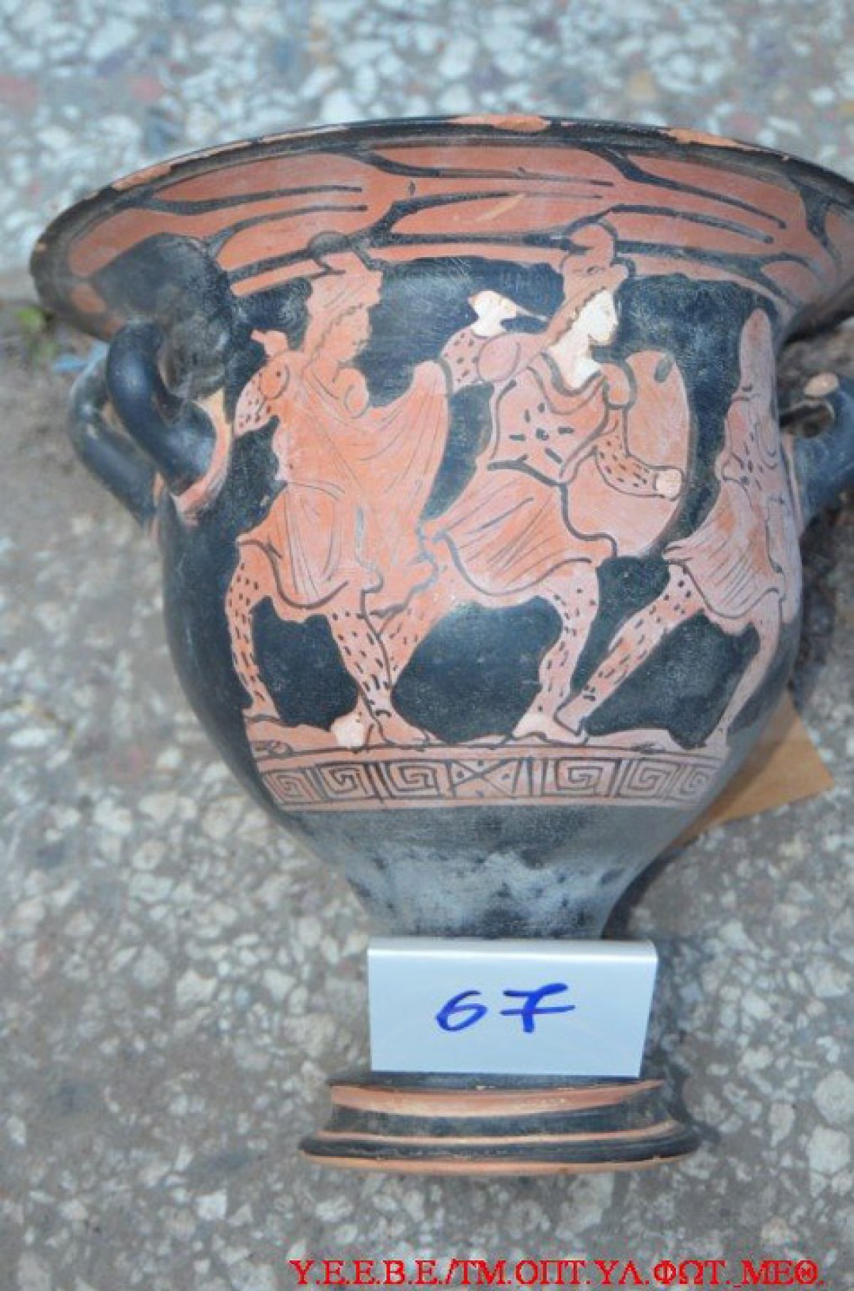 Παράλληλα, στην Εφορεία Αρχαιοτήτων Κοζάνης παραδόθηκαν τα αρχαία αντικείμενα που βρέθηκαν στο εγκαταλελειμμένο κτίριο και ήταν δυο ακέραιοι πήλινοι κάνθαροι με γραπτή διακόσμηση τύπου «Δυτικής κλιτύος», ένας ακέραιος πήλινος ερυθρόμορφος κρατήρας, δυο ακέραια πήλινα μονόμυξα λυχνάρια, ένα άωτο σκυφίδιο, δυο τμήματα μολύβδινου αγγείου, ένα ακέραιο ασημένιο στρεπτό βραχιόλι και μια ακέραια χάλκινη οκτώσχημη πόρπη. Όλα εξετάζονται από αρχαιολόγους για να χρονολογηθούν και να διαπιστωθεί από ποια περιοχή προέρχονται.