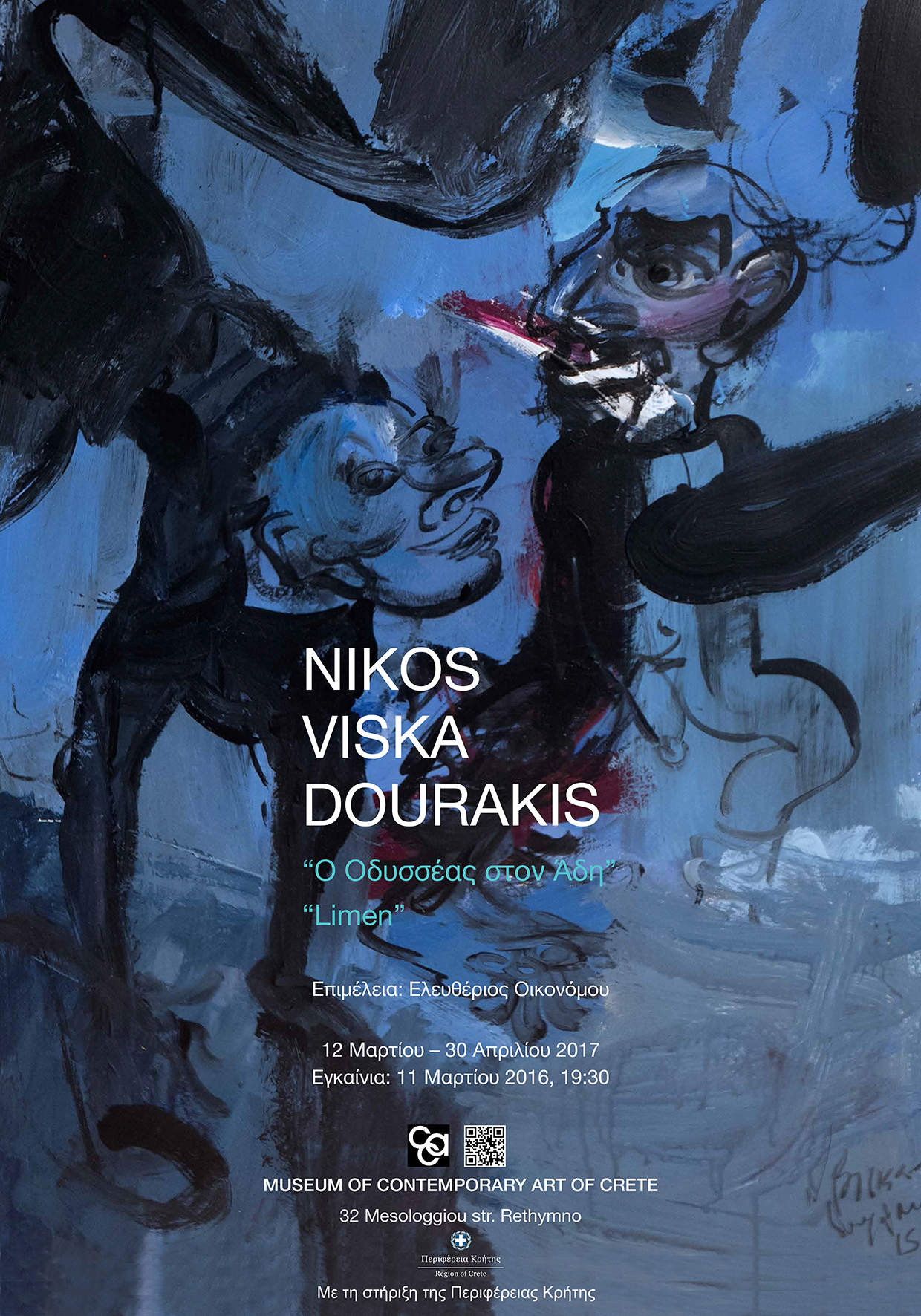 Με την στήριξη της Περιφέρειας Κρήτης θα πραγματοποιηθεί η έκθεση ζωγραφικής του Νίκου Βισκαδουράκη με τίτλο «Ο Οδυσσέας στον Άδη» και « Limen» στο Μουσείο Σύγχρονης Τέχνης Κρήτης στο Ρέθυμνο (Μεσολογγίου 32). Τα εγκαίνια της έκθεσης θα γίνουν το Σάββατο 11 Μαρτίου στις 19:30 με διάρκεια έως τις 30 Απριλίου 2017 ενώ θα υπάρξουν οργανωμένες ξεναγήσεις και εκπαιδευτικά προγράμματα.