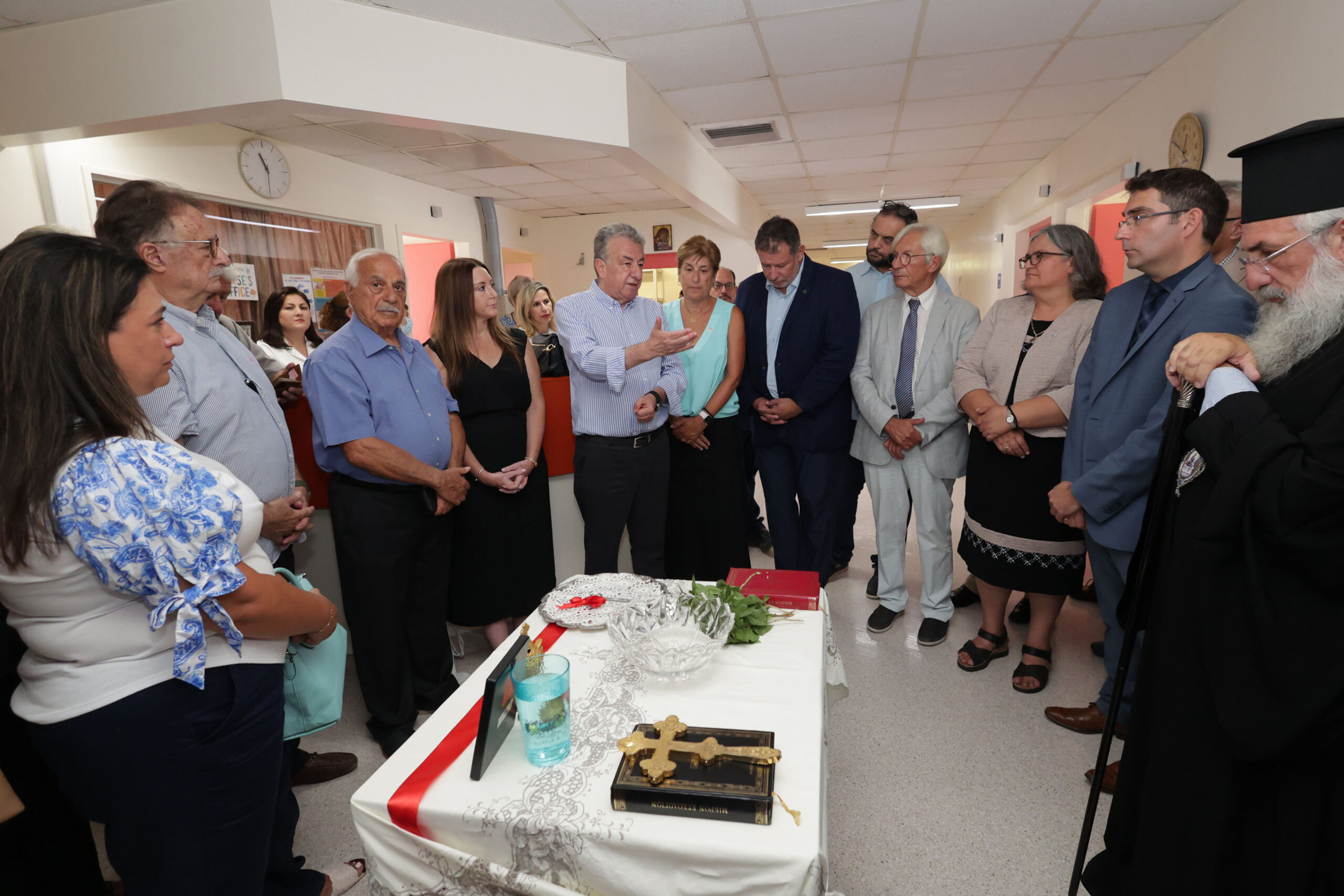 Η λιτή αλλά ουσιαστική τελετή πραγματοποιήθηκε παρουσία του Περιφερειάρχη Κρήτης Σταύρου Αρναουτάκη, του Αρχιεπισκόπου Κρήτης κ. Ευγενίου και του κρητικής καταγωγής Μητροπολίτη Νέας Ζηλανδίας κ. Μύρωνος, ο οποίος τέλεσε τον αγιασμό. Στο πλευρό τους βρέθηκαν Κρήτες ομογενείς, εκπρόσωποι του νοσοκομείου και φορείς της τοπικής κοινωνίας.
